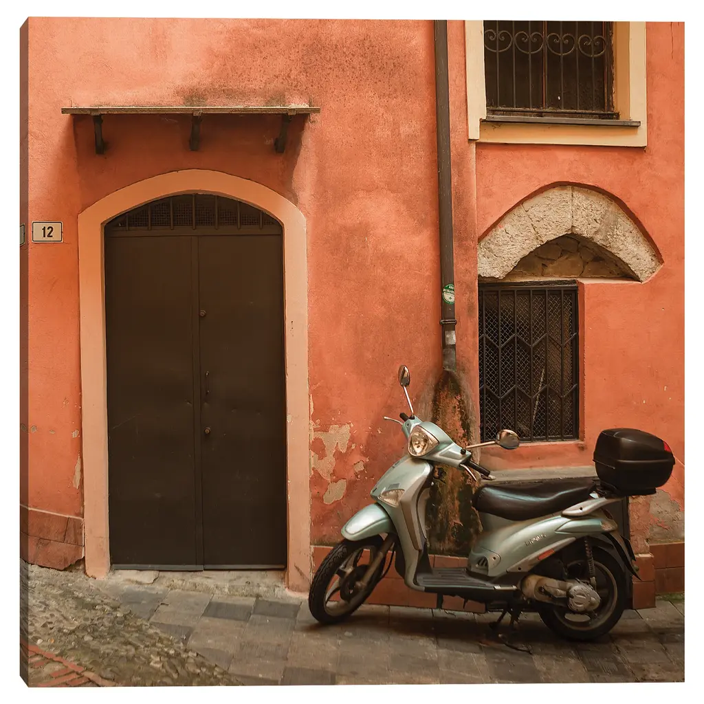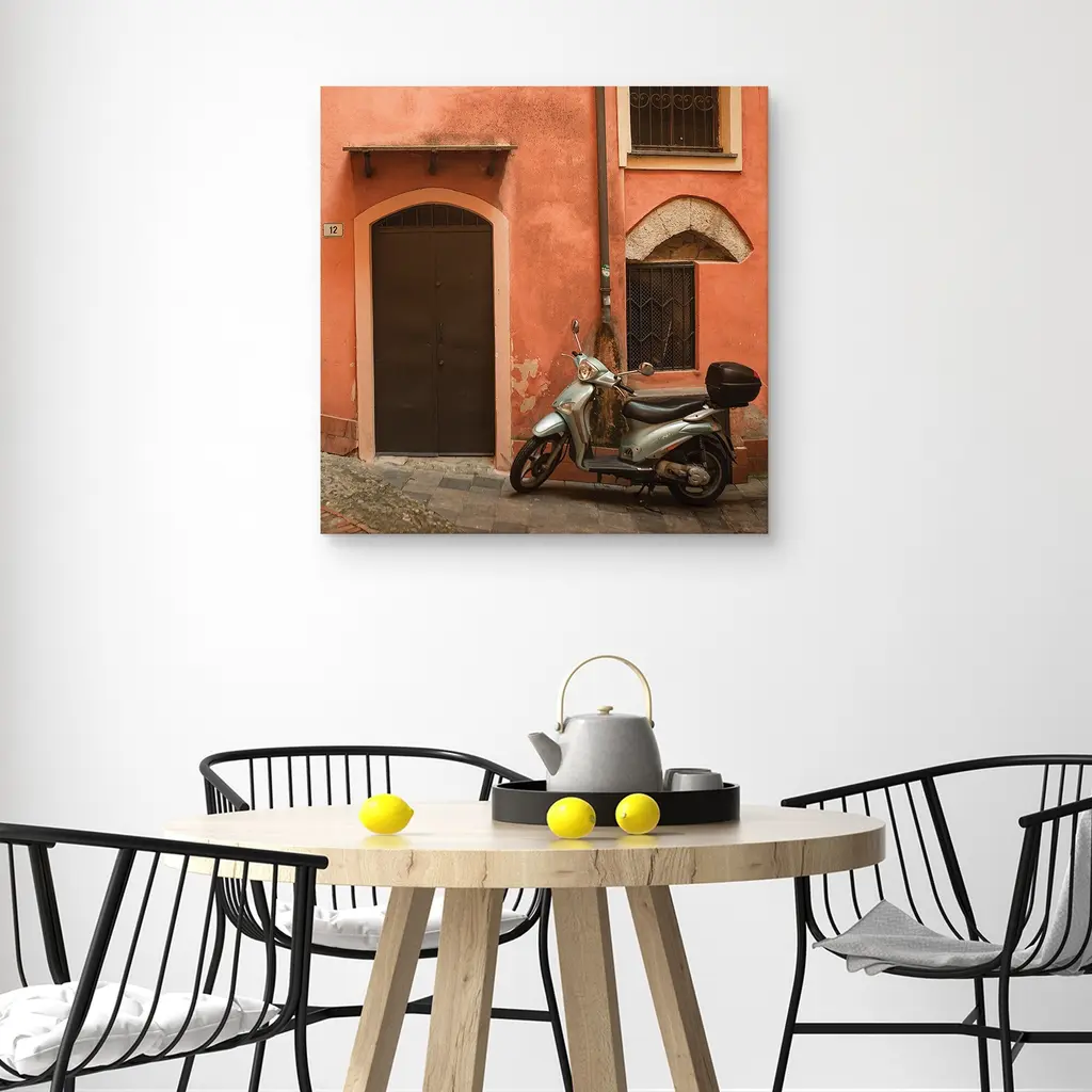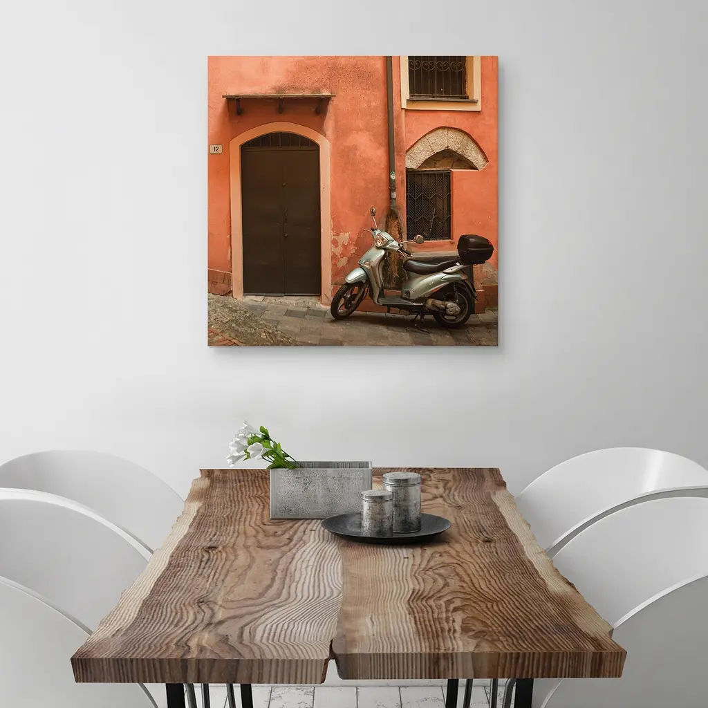 Moped Square by Sossi Madzounian Canvas Art Print is produced with printing that covers the entirety of the canvas for a sleek and stylish museum-quality look. Our framed prints are made by expert craftsmen who strive to make each canvas the masterpiece