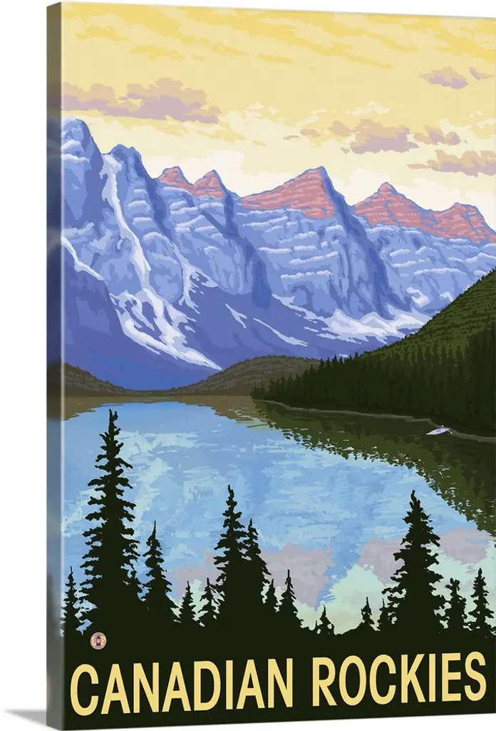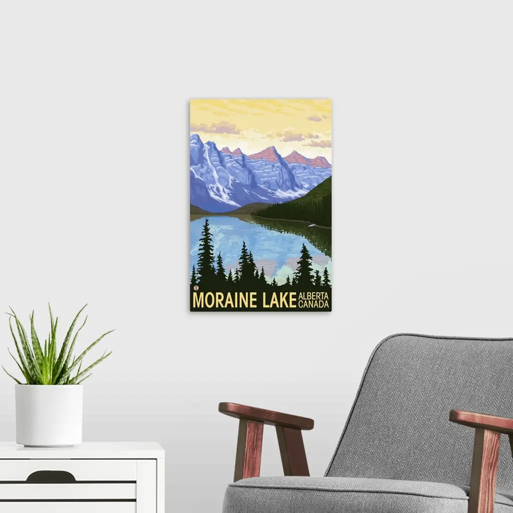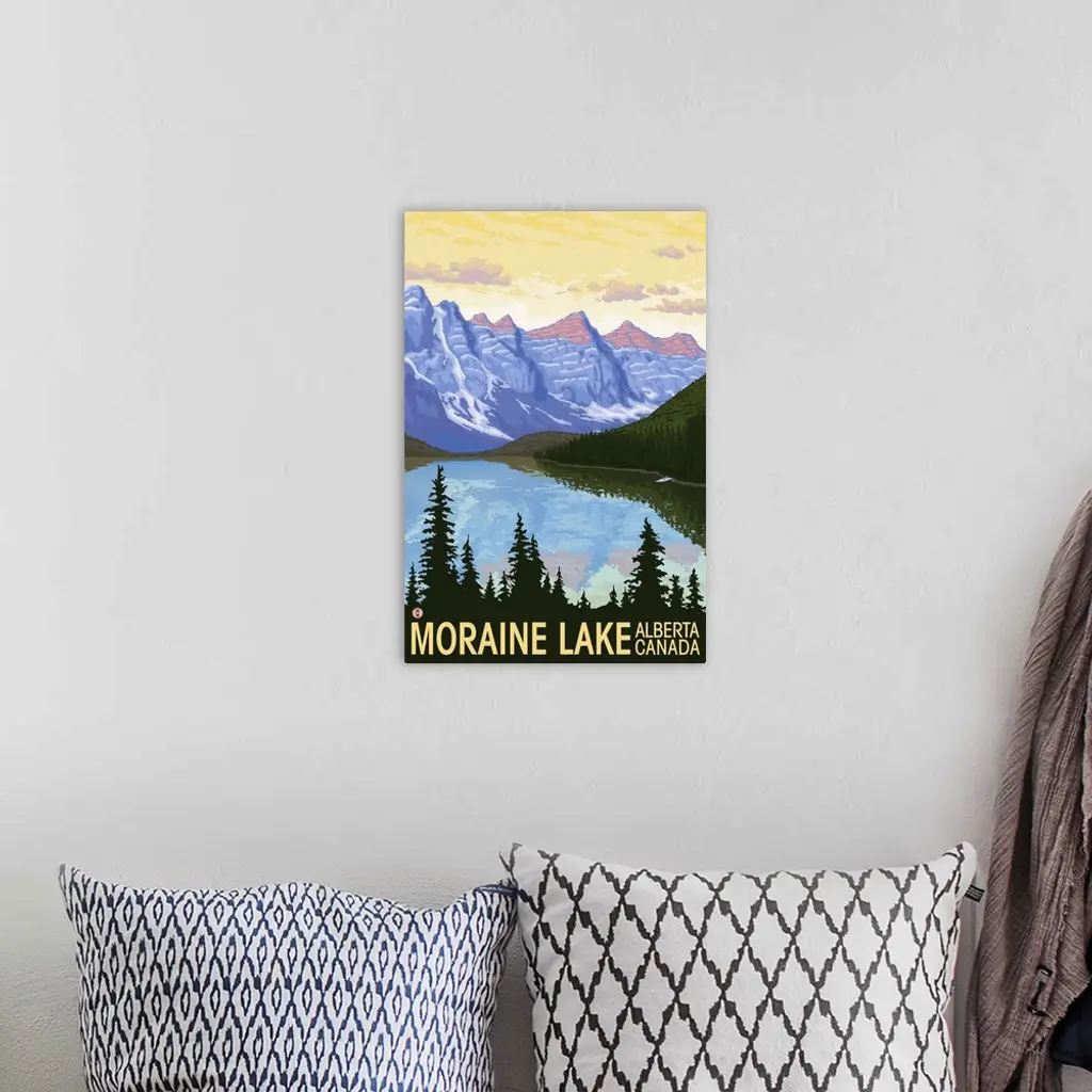 Moraine Lake, Alberta, Canada: Retro Travel Poster wall art for home and office decor. Discover canvas art prints, photos, mural, big canvas art and framed wall art in GreatBigCanvas.com's varied collections.