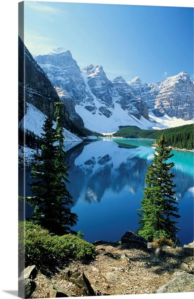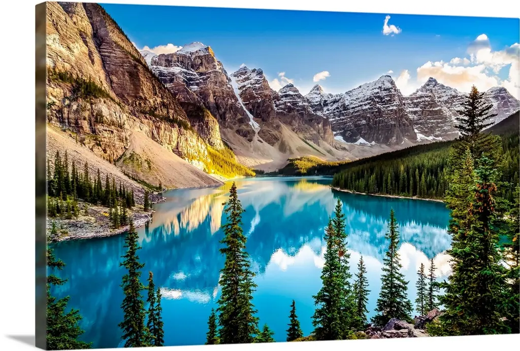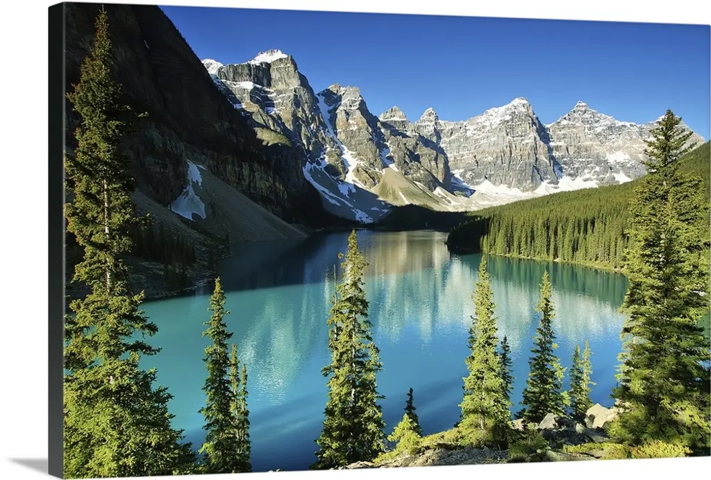 The Moraine Lake in Banff National Park canvas art print is sure to make an impression on anyone who sees it. This artwork is gallery wrapped around a 1-inch solid wood frame and arrives carefully packaged and entirely ready to hang on the wall. Design Art only uses the highest resolution and pigments to ensure a crisp colorful print that is never faded or pixelated. This artwork is sure to be a conversation starter in any home or office.