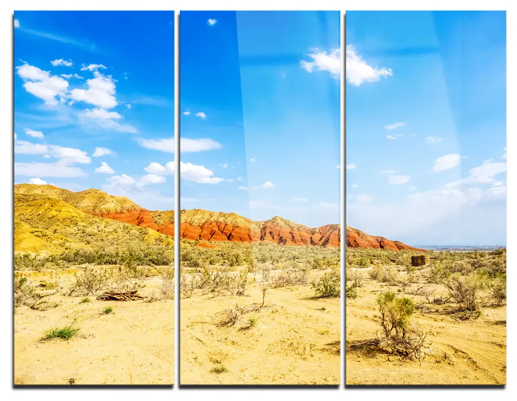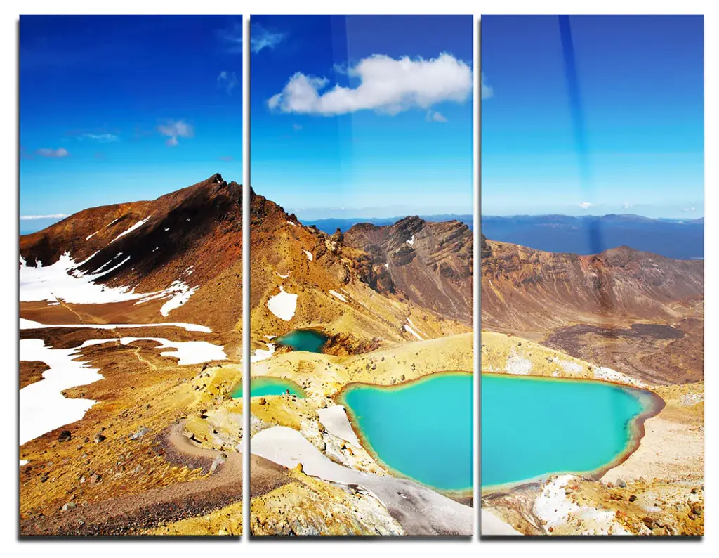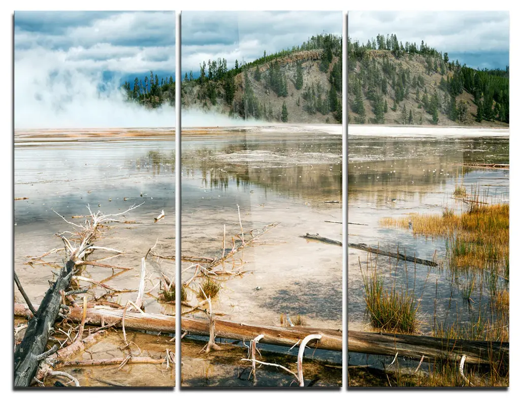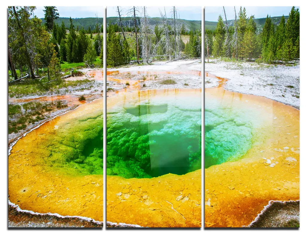 "Morning Glory Pool With Bright Sky" Photo Metal Wall Art, 3 Panels, 36"x28"
