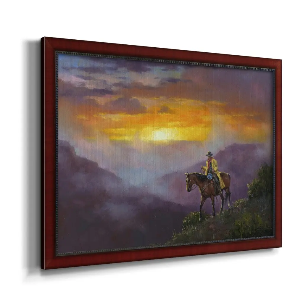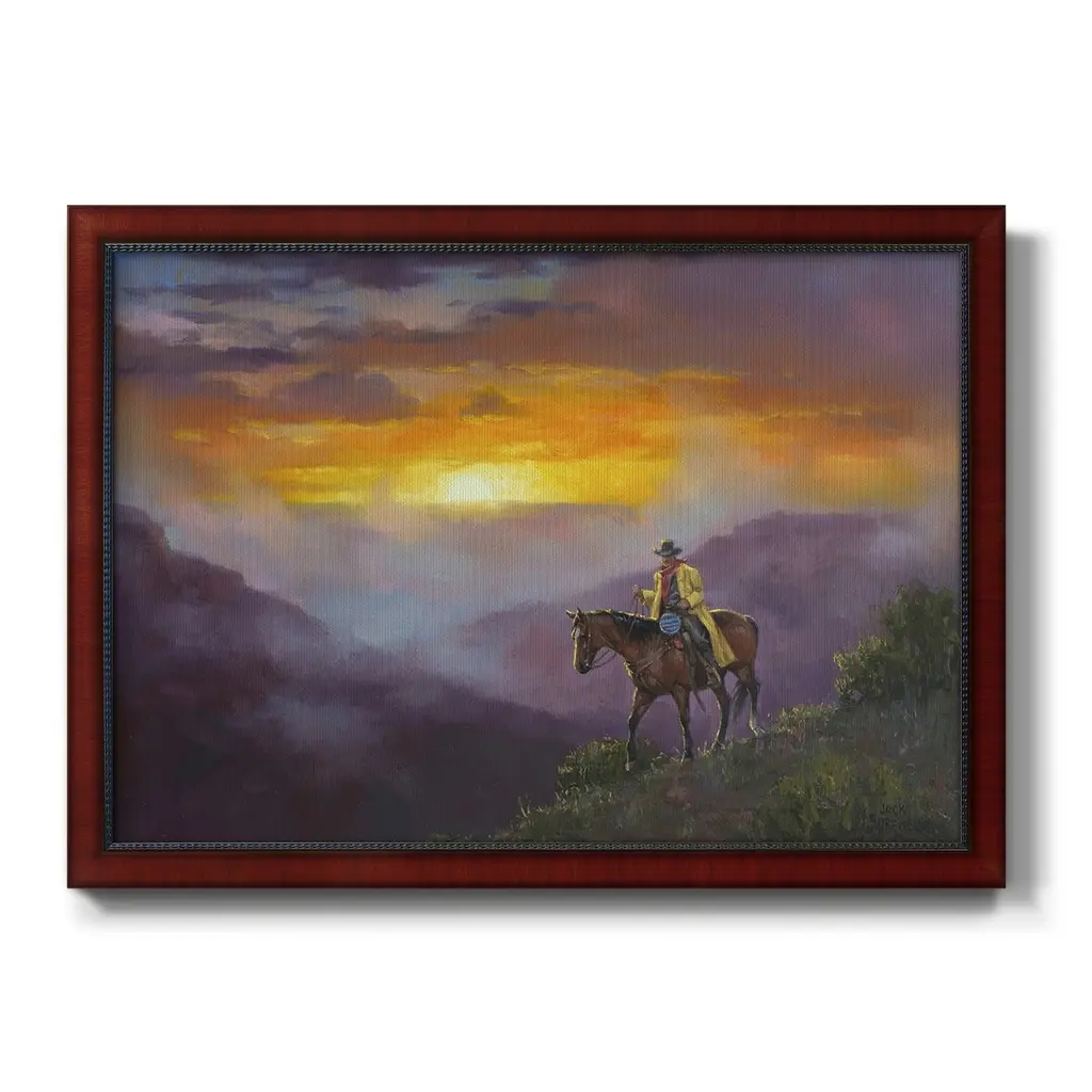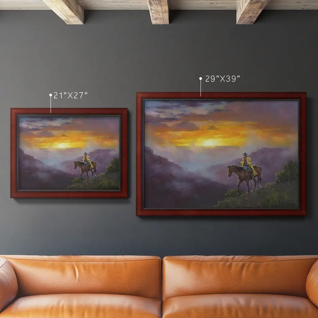 Morning Mist Premium Framed Canvas- Ready to Hang A Premium Framed Canvas created to last. Framed in distressed wood and available in an array of sizes and colors Featuring a beveled a solid wood stretcher bar, each piece comes ready to hand 3 SIZES AVAILABLE 16''X20'' - Overall Size 18'X27'' - Overall Size 24''x36'' - Overall Size Each piece is made to order. Each piece comes with hanging hardware. Made in the USA Ready to Hang Giclee Paper Print Acrylic Glass Beveled Matt Board