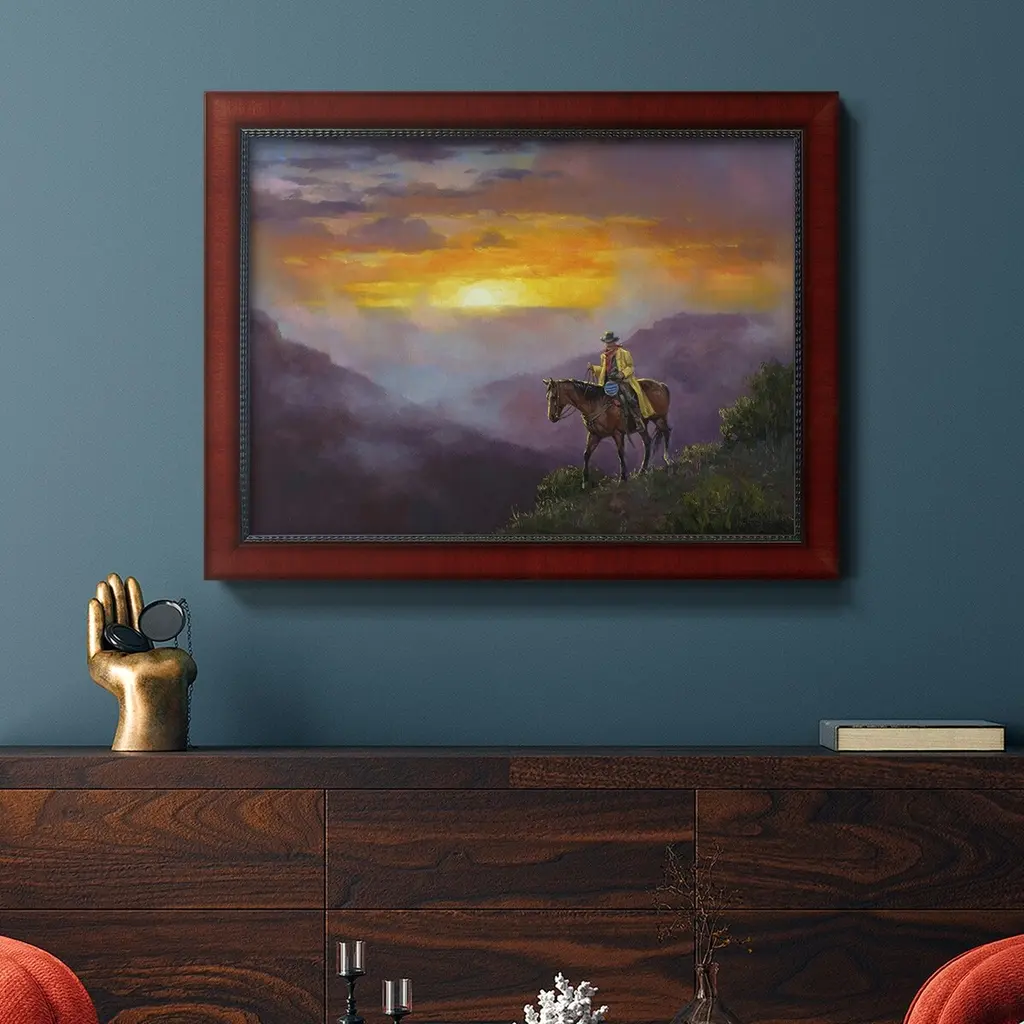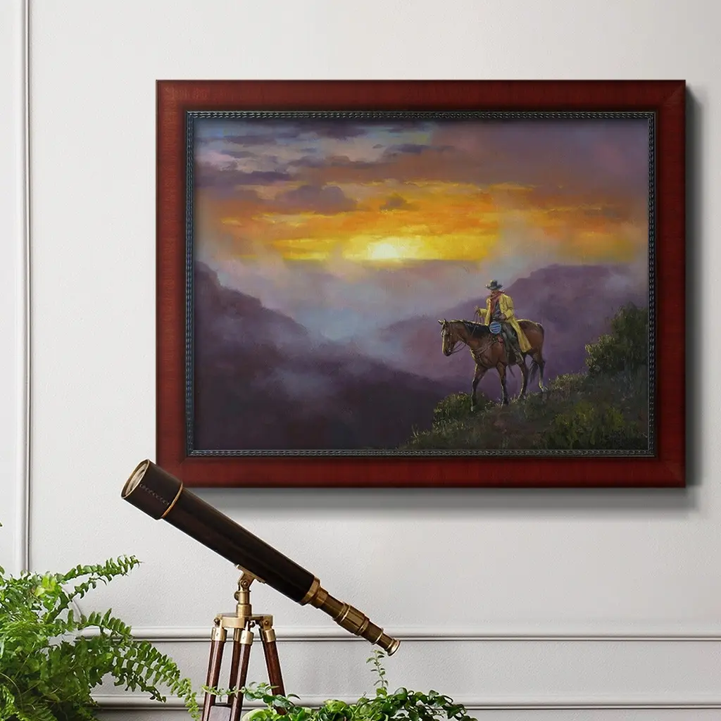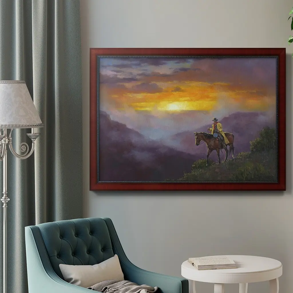 Morning Mist Premium Framed Canvas- Ready to Hang A Premium Framed Canvas created to last. Framed in distressed wood and available in an array of sizes and colors Featuring a beveled a solid wood stretcher bar, each piece comes ready to hand 3 SIZES AVAILABLE 16''X20'' - Overall Size 18'X27'' - Overall Size 24''x36'' - Overall Size Each piece is made to order. Each piece comes with hanging hardware. Made in the USA Ready to Hang Giclee Paper Print Acrylic Glass Beveled Matt Board