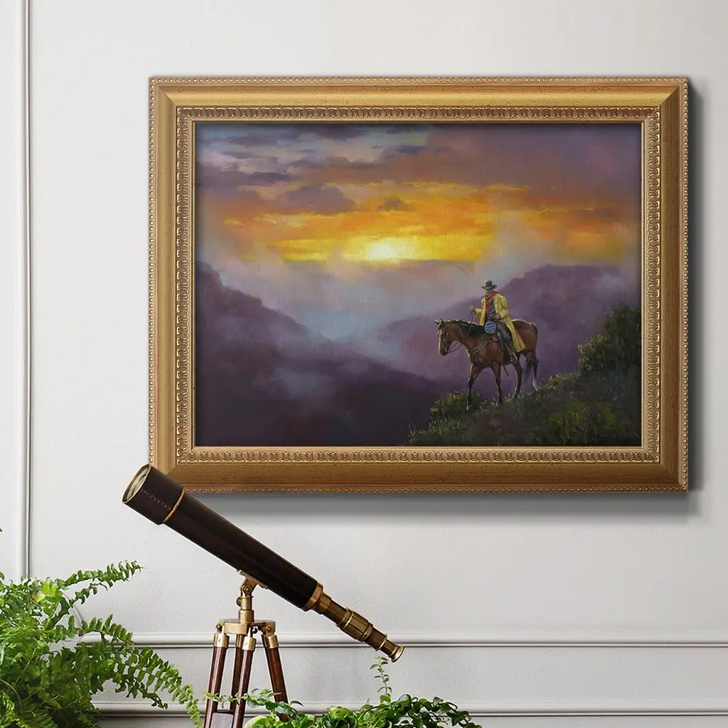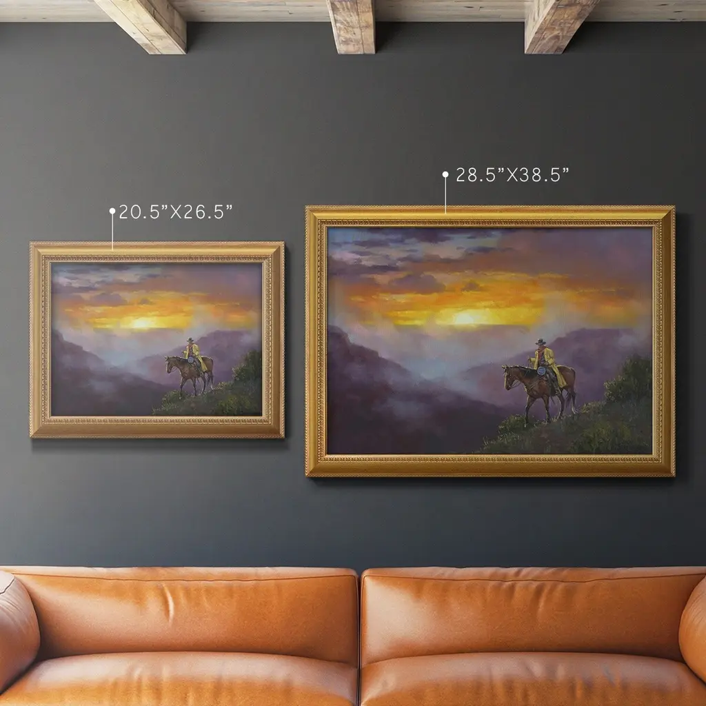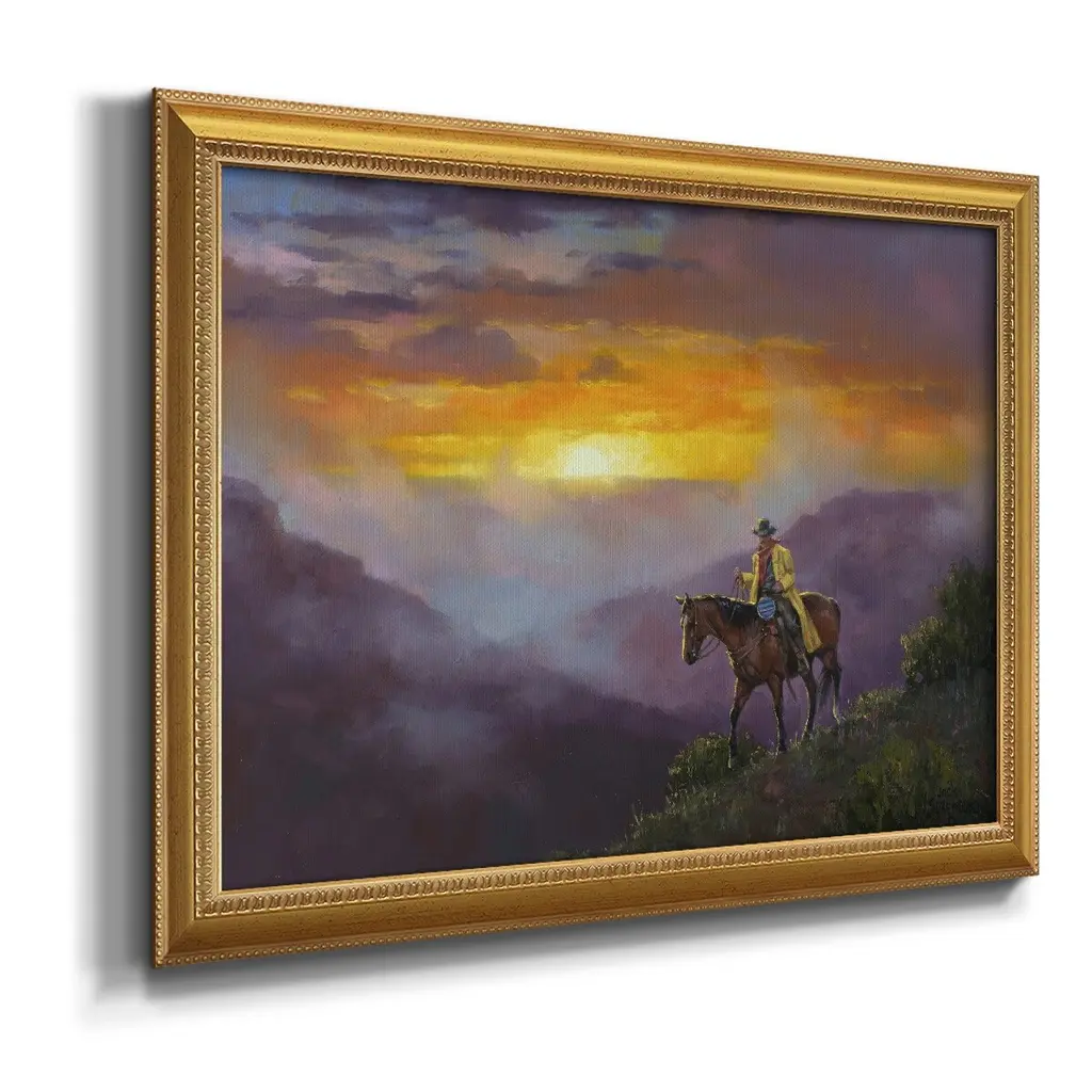 Morning Mist Premium Framed Canvas- Ready to Hang A Premium Framed Canvas created to last. Framed in distressed wood and available in an array of sizes and colors Featuring a beveled a solid wood stretcher bar, each piece comes ready to hand 3 SIZES AVAILABLE 16''X20'' - Overall Size 18'X27'' - Overall Size 24''x36'' - Overall Size Each piece is made to order. Each piece comes with hanging hardware. Made in the USA Ready to Hang Giclee Paper Print Acrylic Glass Beveled Matt Board