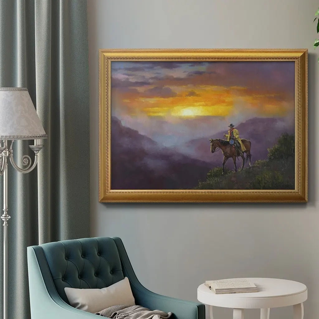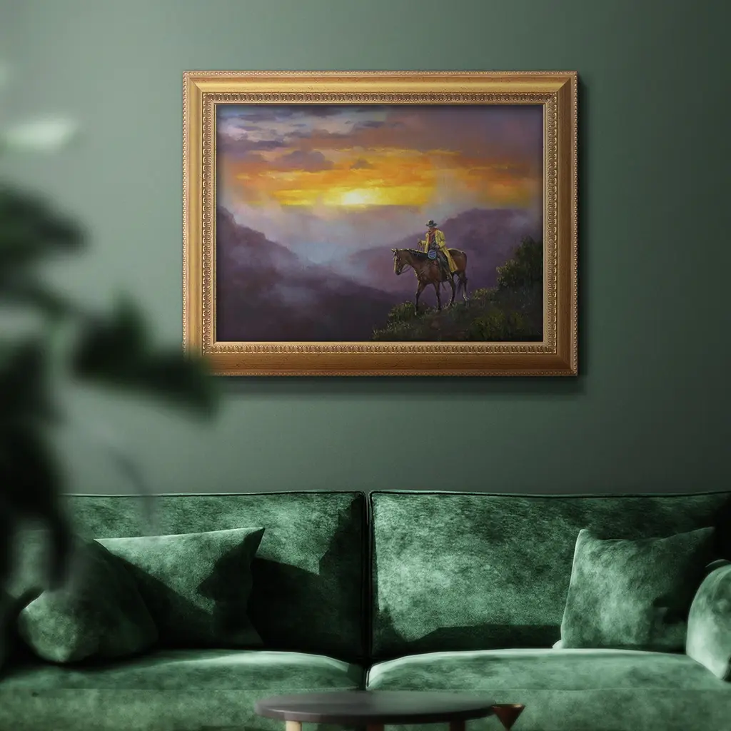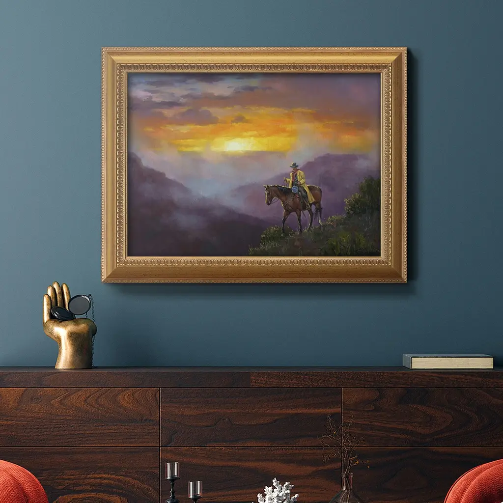 Morning Mist Premium Framed Canvas- Ready to Hang A Premium Framed Canvas created to last. Framed in distressed wood and available in an array of sizes and colors Featuring a beveled a solid wood stretcher bar, each piece comes ready to hand 3 SIZES AVAILABLE 16''X20'' - Overall Size 18'X27'' - Overall Size 24''x36'' - Overall Size Each piece is made to order. Each piece comes with hanging hardware. Made in the USA Ready to Hang Giclee Paper Print Acrylic Glass Beveled Matt Board
