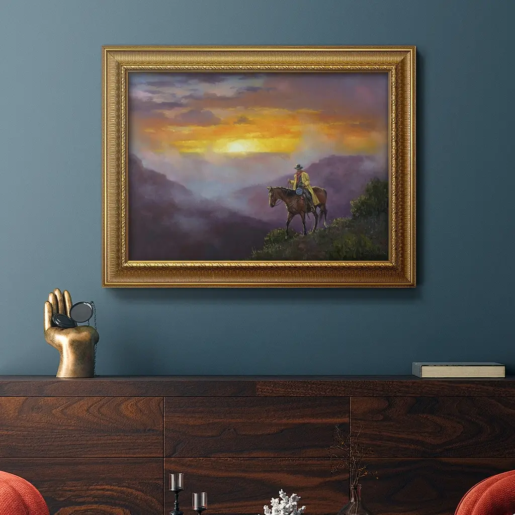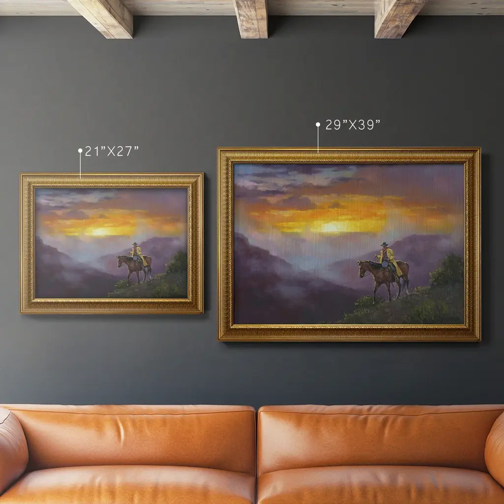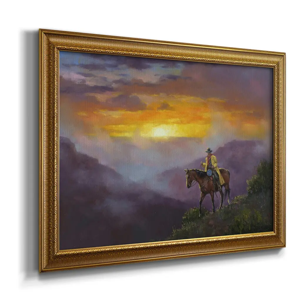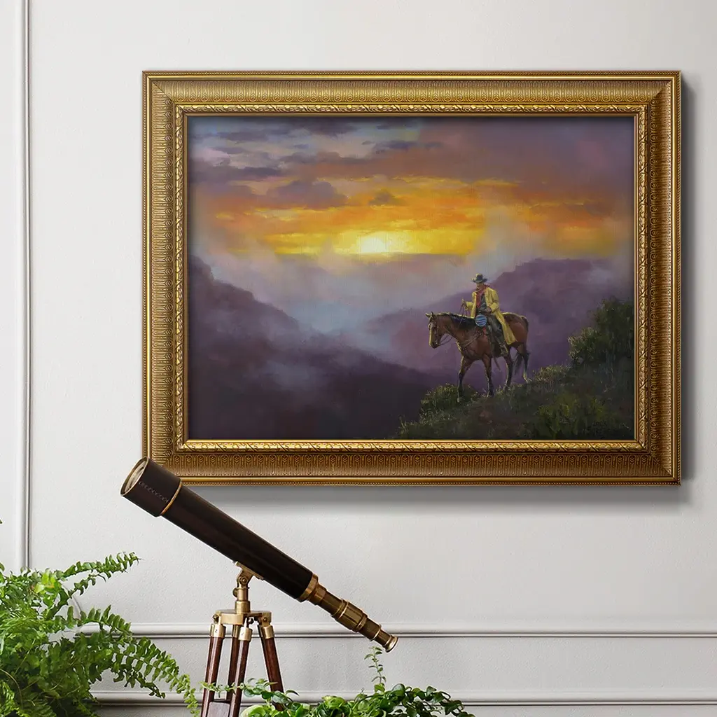 Morning Mist Premium Framed Canvas- Ready to Hang A Premium Framed Canvas created to last. Framed in distressed wood and available in an array of sizes and colors Featuring a beveled a solid wood stretcher bar, each piece comes ready to hand 3 SIZES AVAILABLE 16''X20'' - Overall Size 18'X27'' - Overall Size 24''x36'' - Overall Size Each piece is made to order. Each piece comes with hanging hardware. Made in the USA Ready to Hang Giclee Paper Print Acrylic Glass Beveled Matt Board