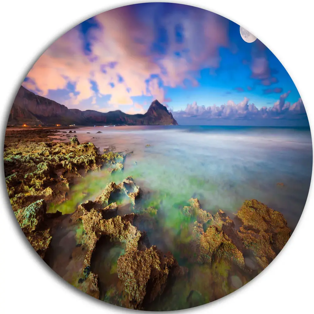 Bring Contemporary Abstraction to your home with this large Circle Metal wall art. This Morning on the Giallonardo Beach Metal Artwork makes it the focal point of any room or office. - White Gloss Coating ensures colors are extra vibrant with light reflection.- Aluminum grade Sheet Metal with 1 inch mounting frame on the back giving the illusion that the artwork is floating on the wall..- Mounting Brackets are included along with instructions.- High Quality Digital images are created directly into a glossy aluminum panel producing a stunning and captivating print into the glossy finish of the metal.- Water, Fire and Scratch resistant HD Aluminum panels.- Looks better than any photo paper and guaranteed to last at least 20 years- Easy to clean with a microfiber cloth. Colors are far superior to regular Canvas Art. - Easy to Hang
