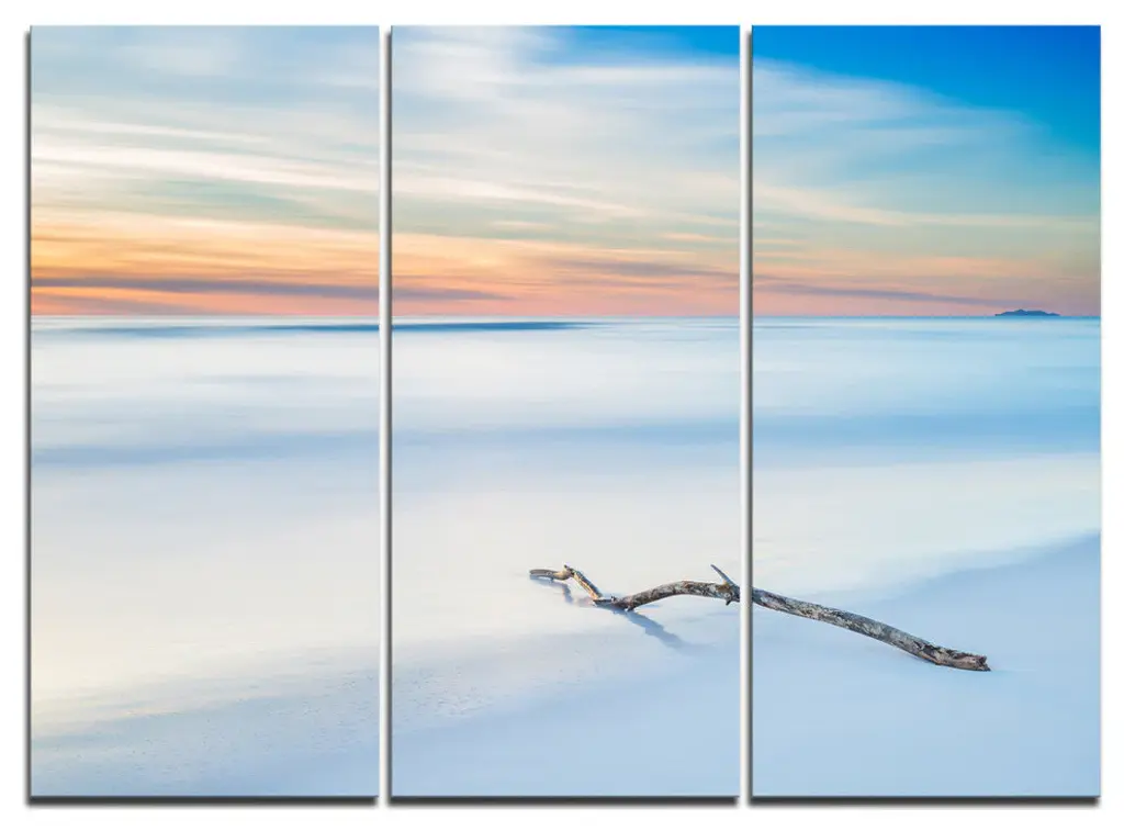 36"œ x 18"œ total size. Ready To Hang! (3 pieces - 12"œ x 18"œ each). 3 Panel Split (Triptych) Metal Print with early morning seacoast rocks hugged by mist + a tree branch. Modern metal wall art for home or office wall decor & interior design. Printed on Luxurious, HD aluminum glossy metal panels. Multi panel art.. HD aluminum panels. Metal print wall art. Includes Shadow Wall Mount on the back.• Aluminum Metal Wall Art• Made in USA• Ready to hang - No assembly required• Shadow mount hardware on the back• 0.045"œ thick HD Aluminum Panels• Scratch resistant, glossy finish• Superb color clarity, luxurious prints• Epson printing process• For indoor or moisture rich environment use• Easy to clean. Gently wipe with microfiber cloth.