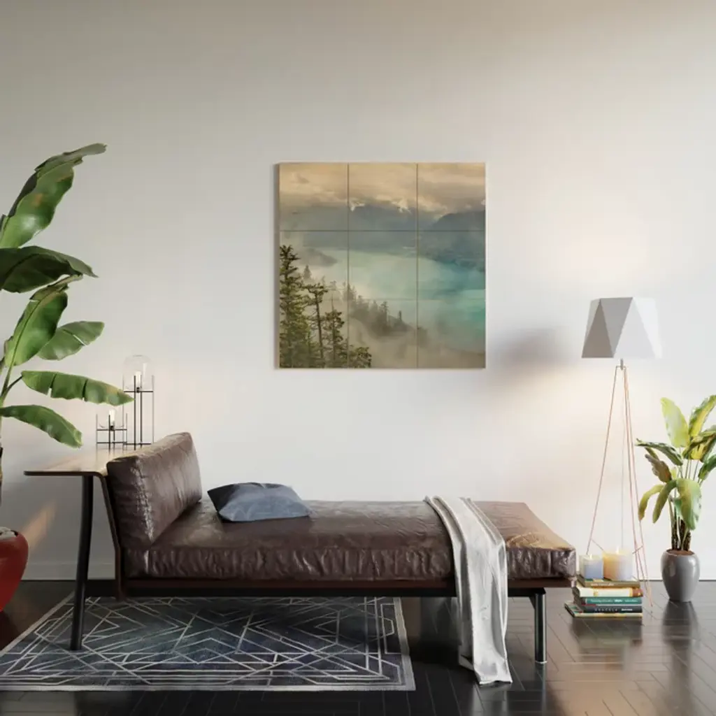 Morning Sunshine Over The Clear Mountain Blue Lake Wood Wall Art