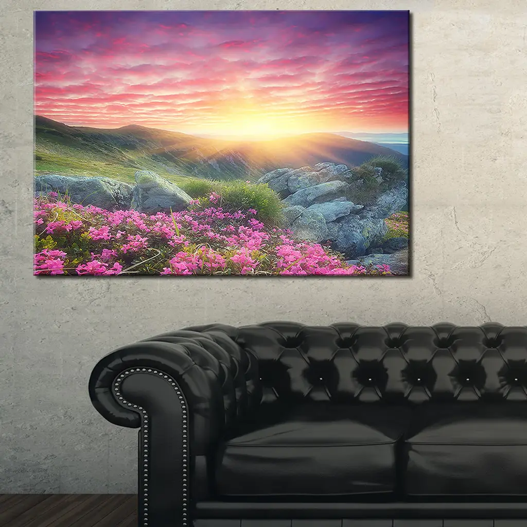 "Morning With Flowers In Mountains" Landscape Canvas Photo Print, 40"x30"
