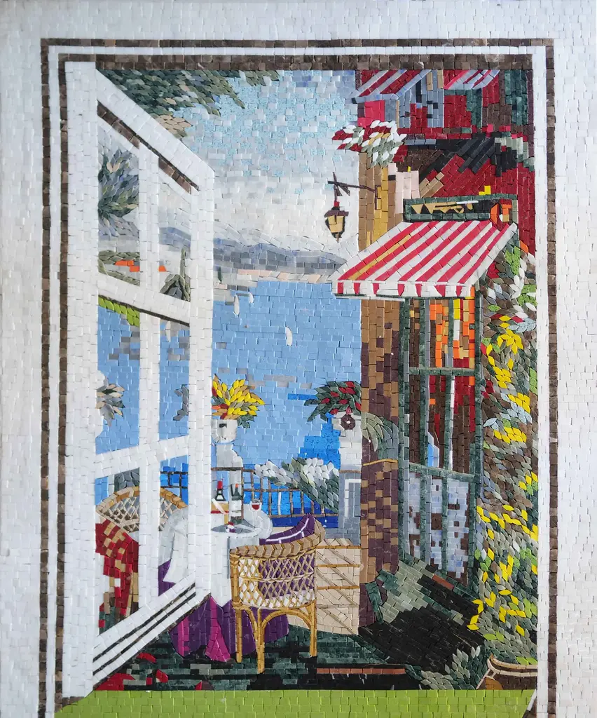 Mosaic Art - Balcony Sea View - 104cm X 130cm (41" X 51") / Without Frame