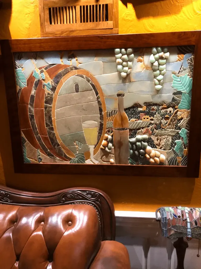 Mosaic Art - Barrel Wine Countryside - 92cm X 60cm (36" X 24") / Without Frame