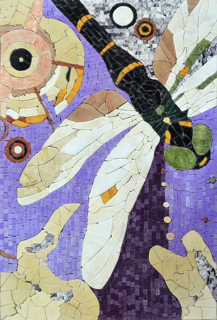 Introducing our stunning Mosaic Art - Dragonfly Colors, a breathtaking piece that effortlessly combines artistry and nature. This vibrant mosaic mural features a beautifully crafted dragonfly, meticulously designed using hand-cut mosaics that deliver a radiant display of colors. Each piece is thoughtfully arranged to create a dazzling effect that captivates the eye and elevates the ambiance of any indoor or outdoor space.The Dragonfly holds significant symbolism in various cultures, often representing transformation, adaptability, and joy. This exquisite artwork not only celebrates the beauty of this enchanting creature but also serves as a vibrant reminder of life's fleeting moments and the beauty found in change.Designed to make a statement, this mosaic art can be customized to fit perfectly in your desired space. Choose from various sizes and border options, ensuring it complements your décor style flawlessly. Whether you want to create a serene atmosphere in a garden, add a splash of color to your living room, or showcase a stunning focal point in an entryway, the Mosaic Art - Dragonfly Colors is an excellent choice.Crafted with care, each piece of this mosaic is made from high-quality materials, ensuring durability and longevity for years to come. The interplay of colors, combined with the intricate detailing of the dragonfly, creates a mesmerizing visual effect that enchants viewers and sparks conversations. Bring the wonder of nature into your home with the Mosaic Art - Dragonfly Colors. It is more than just an artwork; it’s a celebration of beauty, creativity, and the transformative power of art. Transform your space today with this stunning mural, and let the vibrant colors and intricate design bring joy and inspiration to your everyday life.