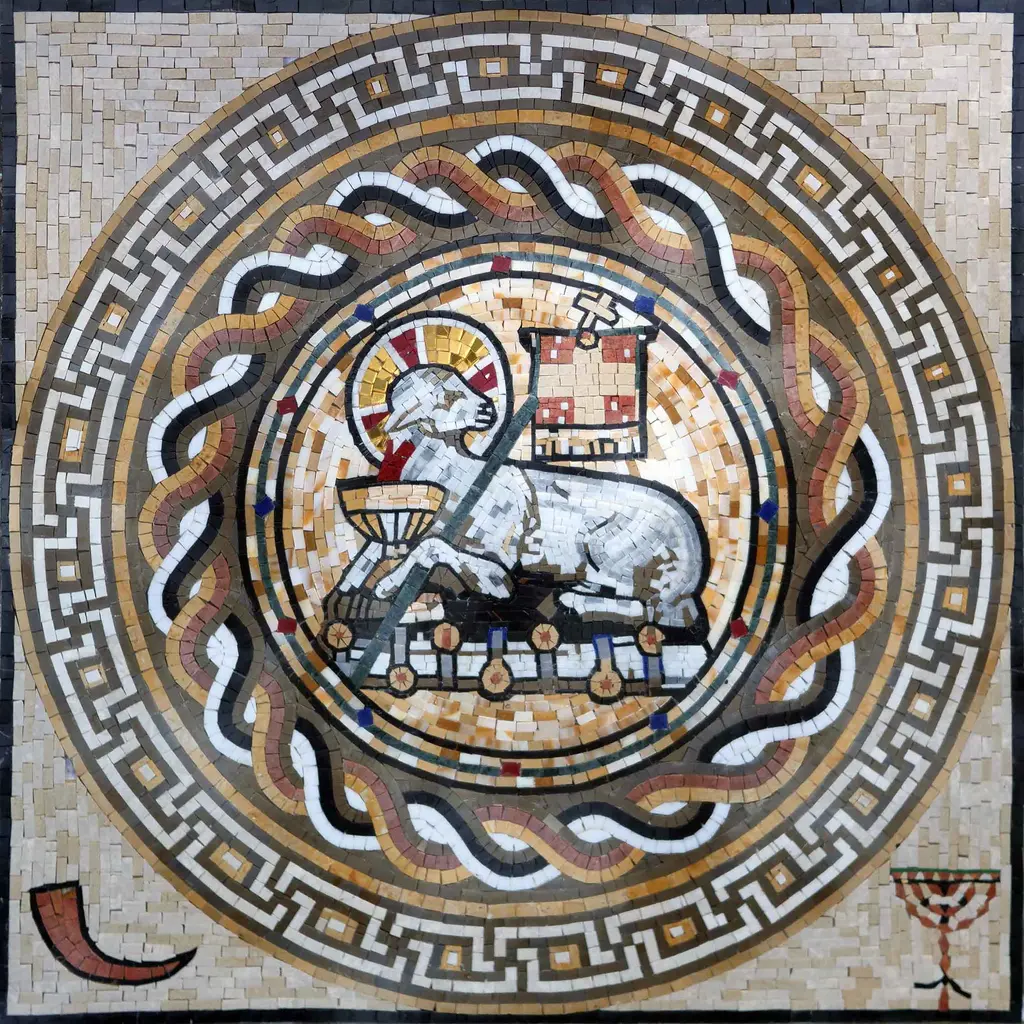 Mosaic Artwork - Lamb Of God | Luxury Handcrafted Stone Art - 90cm X 90cm (36" X 36") / With Frame