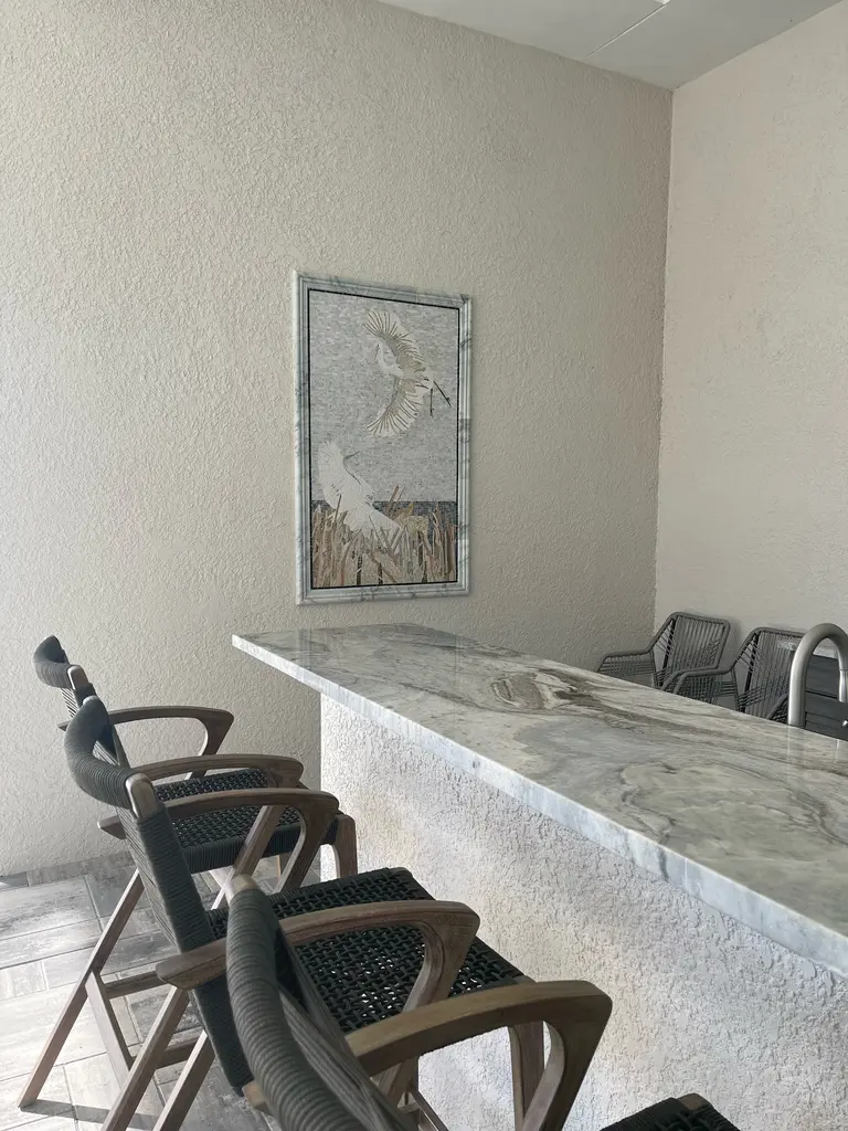 Introducing our breathtaking Mosaic Artwork - Soaring Pelicans, a captivating piece that effortlessly combines elegance and nature's beauty. This exquisite artwork features two majestic pelicans gliding gracefully across the sea, surrounded by a serene backdrop that will instantly elevate the ambiance of any room. The dominant shades of white and grey marble create a harmonious blend that complements a variety of interior styles, making it a versatile addition to your home décor. Whether you're looking to enhance your living area, bedroom, or bathroom, this stunning mosaic is sure to be a conversation starter, as its intricate details and artistry draw the eye and spark admiration.Each piece is meticulously crafted, showcasing the skill and passion of talented artisans dedicated to creating unique masterpieces. The pelicans, with their regal postures and tranquil presence, are a symbol of grace and freedom, ideal for those who appreciate the beauty of nature. Hang this artwork in a prominent position to create a focal point in your space, or use it as part of a curated gallery wall for an eclectic touch. This Mosaic Artwork - Soaring Pelicans not only adds visual interest but also brings a sense of calm and serenity into your home, reminiscent of peaceful ocean vistas.Bring the beauty of the sea indoors with this stunning mosaic, and let the artistry of the pelicans inspire you every day. Perfect as a gift for nature lovers or as a delightful treat for yourself, this piece is more than just decoration; it's a celebration of life's beauty and grace. Transform your space with the elegance of our Mosaic Artwork - Soaring Pelicans today!