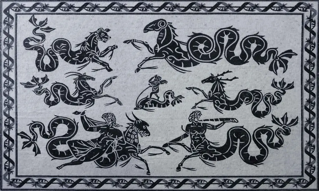 Introducing our Mosaic Artwork - Tailed Animals, a breathtaking masterpiece that blends ancient artistry with contemporary elegance. This unique piece is designed to transform your space, making it an ideal addition to any room seeking a touch of sophistication. The artwork features a striking portrayal of mythical creatures and ancient deities, each adorned with magnificent dragon tails, set against a serene neutral background. Handcrafted by skilled artisans, our Mosaic Artwork - Tailed Animals boasts an exceptional quality that makes every piece truly one-of-a-kind. The intricate details and vibrant colors capture the essence of traditional mosaic techniques while providing a modern aesthetic that complements various interior styles. Whether you're looking to enhance your living room, office, or gallery wall, this artwork promises to be a conversation starter. Its regal and sophisticated design not only enriches the atmosphere of your surroundings but also reflects your personal taste and appreciation for artistic craftsmanship. Each piece is thoughtfully created to achieve the perfect harmony of rustic charm and sleek elegance. The result is a stunning focal point that brings a sense of refinement and cultural depth to your décor. Bring home the Mosaic Artwork - Tailed Animals and let it inspire and elevate your space, showcasing the beauty of handmade artistry. Embrace the allure of mosaic and let your walls tell a story of ancient myths and modern sophistication.