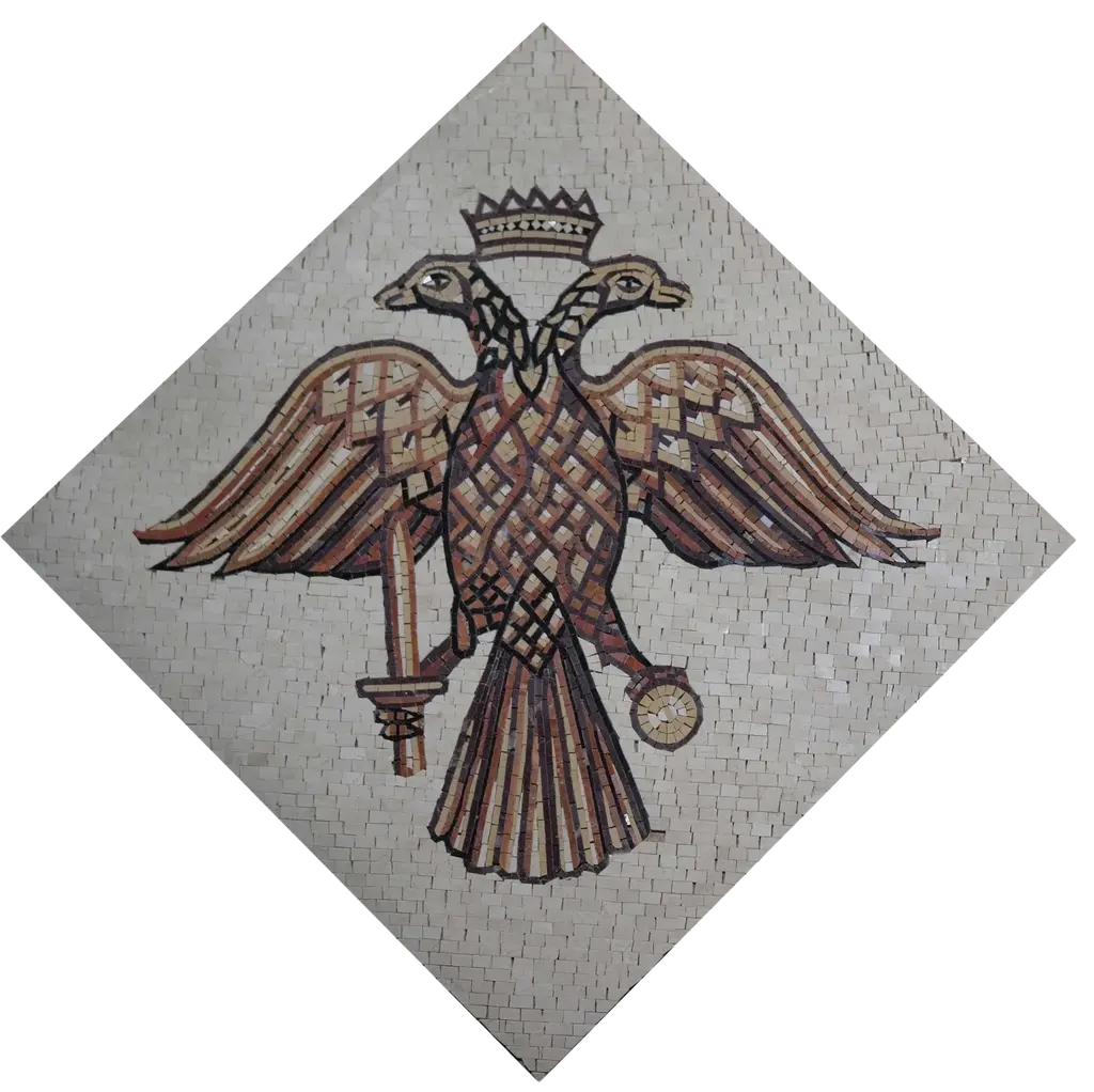 Introducing our exquisite Mosaic Artwork - Two Heads Eagle, a stunning piece that beautifully captures the majestic presence of the iconic two-headed eagle. This exceptional artwork is entirely handmade, crafted with meticulous attention to detail using premium quality neutral toned marble stones. The inherent beauty and uniqueness of each stone lend a natural charm to this mosaic, making it a perfect addition to any space.The design of the Two Heads Eagle symbolizes strength, unity, and vigilance, embodying a sense of power that is ideal for both residential and commercial settings. Whether you choose to install it in your living room, office, or even in an outdoor space, this mosaic artwork will undoubtedly become a captivating focal point that draws the eye and ignites conversation.Installation is effortless, allowing you to transform your wall with this elegant and sophisticated piece. The neutral tones of the marble stones complement a variety of decor styles, from contemporary to traditional, ensuring that this Mosaic Artwork - Two Heads Eagle harmonizes beautifully with your existing interior or exterior design.Invest in a statement piece that not only enhances your environment but also tells a story of artistry and heritage. The Mosaic Artwork - Two Heads Eagle is more than just decoration; it’s a timeless emblem that embodies artistry, culture, and sophistication. Elevate your space today with this one-of-a-kind mosaic and experience the transformative power of art in your home or office.
