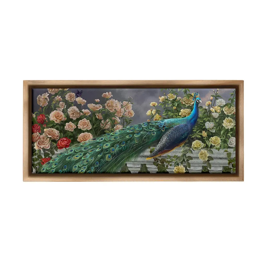 Mosaic Birds - Double Peacock | Luxury Handcrafted Natural Stone Art - 390cm X 78cm (154" X 31") / With Frame