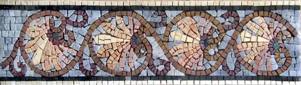 Introducing the Mosaic Border - Mosaic Wave Design, a stunning piece of artistry that brings a touch of elegance and sophistication to any space. This exquisite mosaic artwork showcases an enchanting portrayal of curvy waves, expertly crafted to evoke the serene beauty of nature. Each wave is adorned with delicate freckles, giving the design a timeless, classic touch that harmonizes perfectly with both modern and traditional aesthetics.Handmade from premium marble stones, this mosaic border not only serves as a decorative accent but also exemplifies quality craftsmanship that stands the test of time. The use of durable materials ensures that the artwork can be enjoyed in various settings, making it ideal for both indoor and outdoor spaces. Whether you want to enhance your garden pathway, create a captivating focal point in your living room, or add character to your patio, this Mosaic Wave Design is the perfect choice.Imagine the beautiful interplay of light and shadow as the sun dances across the surface of this intricate mosaic, bringing your space to life with its vibrant colors and textures. The curvy wave pattern symbolizes fluidity and movement, evoking a sense of peace and tranquility that can transform the atmosphere of your home or garden.The versatility of the Mosaic Border - Mosaic Wave Design means it can seamlessly blend into diverse styles and décors. Use it to frame a tranquil reflection pool, line a breezy terrace, or simply as a stunning wall feature that intrigues and inspires.Elevate your surroundings with this remarkable piece of craftsmanship. Whether you're a mosaic enthusiast or someone who appreciates fine art, this design is sure to leave a lasting impression. Transform your spaces into a personal oasis with the exquisite Mosaic Border - Mosaic Wave Design, a timeless piece that combines beauty, artistry, and functionality.