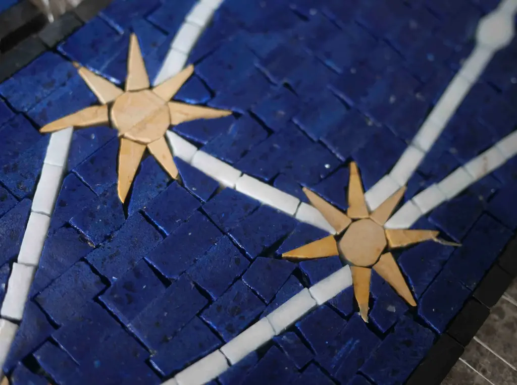 Transform your space with our exquisite Mosaic Border - Star Border, a stunning addition that elevates any wall with unparalleled elegance. This unique border features a captivating design of simple blue borders intricately interlinked with charming star motifs, infusing your interiors with a perfect balance of whimsy and sophistication. Each piece is meticulously handcrafted from premium marble stones, ensuring that every mosaic boasts its own distinctive character, durability, and artisan quality. Designed for versatility, this luxury stone border enhances a variety of surfaces — whether in residential, office, or commercial environments. The intricate craftsmanship highlights not only superior quality but also refined artistry, allowing you to create dazzling visual accents that captivate and inspire conversation. The calming blue tones provide a serene, silky backdrop, while the star designs add playful charm. What truly sets this mosaic apart is the inclusion of radiant Dark Blue Quartz, whose luminous, crystalline brilliance imparts a jewel-like depth and scintillating shimmer to the composition. This premium natural stone’s prismatic translucence and cool-to-the-touch texture elevate the mosaic’s aesthetic with a captivating, exotic allure. Ideal for both modern and traditional settings, the Mosaic Border - Star Border can frame artwork, outline a focal wall, or simply add a decorative flourish to any room. Its durable marble and exotic material composition ensure it withstands the test of time, maintaining its radiant beauty for years to come. Elevate your next project or renovation with this exceptional handcrafted mosaic. Let your walls tell a story that blends artistic charm with premium quality—transforming spaces into reflections of your personal style. Bring home the Mosaic Border - Star Border today and experience the beauty of luxury natural stone craftsmanship.