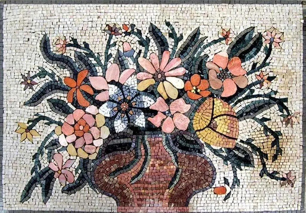 Introducing "Mosaic Designs - Florille," a stunning flower arrangement meticulously crafted from premium handmade marble mosaics. This exquisite piece transforms natural stones and artistic tiles into a captivating design that is sure to breathe life into any space. The Florille collection captures the essence of vibrant florals, combining intricate patterns with a rich palette of colors that evoke the beauty of nature.Whether you're looking to enhance your walls or create a striking floor inlay, the Florille design offers a unique focal point that draws the eye and adds character to any room. Each mosaic is thoughtfully arranged by skilled artisans, ensuring that every piece stands out as a testament to craftsmanship and artistic vision. The natural stones used in this arrangement not only provide durability but also ensure that your mosaic will remain a timeless addition to your décor.Incorporating the Florille mosaic into your home lets you create an ambiance that is both inviting and sophisticated. It works beautifully in a variety of settings, from modern living rooms to classic entryways, and is perfect for both residential and commercial spaces. Elevate your home decor with this one-of-a-kind art piece that tells a story of nature’s beauty, creativity, and elegance.With the Mosaic Designs - Florille, you not only invest in a decorative element but also in a piece of art that celebrates the harmony between nature and design. Enhance your interiors and make a lasting impression with this breathtaking mosaic that truly represents the artistry of handmade craftsmanship. Transform your space today with this unique and charming floral design.