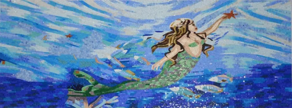 Immerse yourself in the enchanting world of "Mosaic Designs - Mermaid Lullaby III," where artistry meets nature in a mesmerizing display. This stunning handmade mosaic transports you into a realm of myth and wonder, showcasing a beautiful mermaid that adds a touch of whimsy to any space. Crafted from all-natural materials, each piece is meticulously arranged to create a striking visual that is both unique and captivating. The intricate design invites admiration, making it a perfect focal point for your home or outdoor area. Whether you choose to adorn your swimming pool or spa with this delightful artwork, or use it as a striking backsplash in your kitchen or bathroom, "Mosaic Designs - Mermaid Lullaby III" effortlessly elevates your decor.This mosaic is not just a decorative piece; it's an expression of your personality and love for creativity. Ideal for those who appreciate handmade artistry, it brings a sense of tranquility and magic to your environment, reminding you of the ocean's mysteries and the charm of mythical creatures. Perfectly suited for both indoor and outdoor spaces, this versatile mosaic is crafted with durability in mind. It can withstand various environmental elements while maintaining its vibrant colors and detailed craftsmanship. Let "Mosaic Designs - Mermaid Lullaby III" be the conversation starter in your home, a beautiful addition that tells a story and sparks the imagination.Enhance your living space with the allure of this breathtaking mosaic and dive into a world where beauty and nature coalesce. Explore the magic of "Mosaic Designs - Mermaid Lullaby III" today and let your creativity shine!