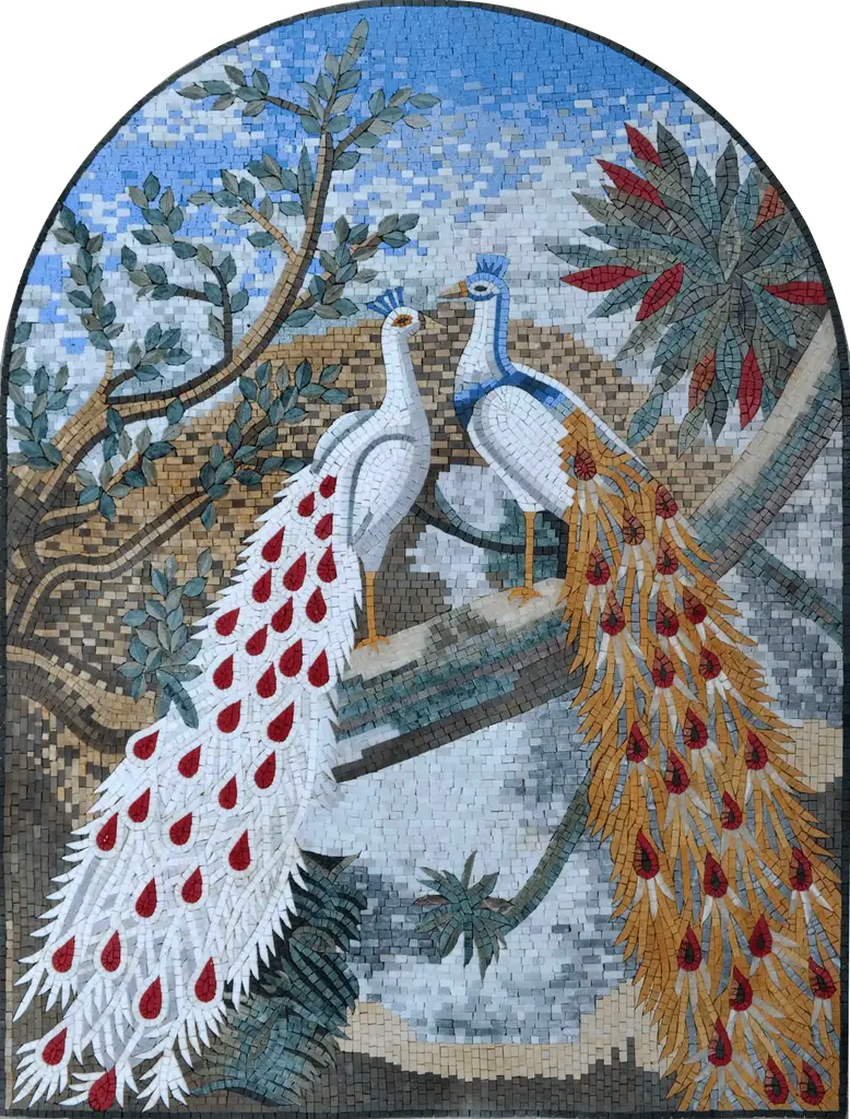 Introducing our stunning "Mosaic Designs - Peacock," a breathtaking piece of art that brings the vibrant beauty of nature into your home. This exquisite mosaic mural showcases a captivating peacock, renowned for its mesmerizing plumage and graceful presence. Each design is lovingly handcrafted, featuring a mottled natural marble finish that adds a touch of elegance and sophistication to any space.What sets this mosaic apart is the intricate craftsmanship that goes into creating each piece. The use of small hand-cut tesserae not only highlights the artistry involved but also contributes to a striking 3-dimensional effect that brings the peacock to life. As light dances across the surface of the mosaic, expect to witness a play of colors and textures that creates a dynamic visual experience, making this mural a focal point in any room.Due to the unique handcrafted nature of this artwork, every piece may display subtle differences, which only adds to its charm and individuality. No two mosaics are exactly alike, ensuring that your "Mosaic Designs - Peacock" mural is a one-of-a-kind expression of beauty and creativity.Perfect for living rooms, dining areas, or as a stunning entryway statement, this mosaic mural will resonate with lovers of art and nature alike. It’s not just a decoration; it’s a conversation starter, a piece that invites admiration and appreciation. Transform your space into an oasis of color and elegance with this extraordinary mosaic that celebrates the allure of the peacock.Whether you’re decorating your home, looking for a unique gift, or simply wanting to add a touch of artistry to your environment, the "Mosaic Designs - Peacock" mural is the perfect choice. Embrace the beauty of handcrafted art and elevate your interior decor with this enchanting piece today.