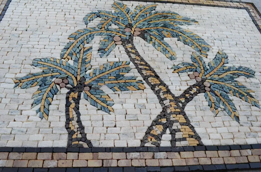 Introducing "Mosaic Designs - The Palms," a stunning piece of wall art that brings the essence of tropical elegance into your home or office. This exceptional mosaic features intricately crafted palm trees, known for their ability to convey a sense of tranquility and a laid-back lifestyle. Imagine the vibrant colors and intricate details of this artwork transforming your space into a serene oasis, reminiscent of sun-soaked beaches and gentle ocean breezes.The Palms mosaic is more than just decoration; it's an experience that captures the beauty and vitality of nature. Whether you're looking to enhance your living room, add a touch of sophistication to your office, or create a peaceful atmosphere in your study, this mosaic serves as a perfect focal point for any environment. Each piece is meticulously designed to showcase the elegance of palm trees, inviting warmth and relaxation into your surroundings.Available in both standard and custom sizes, you can easily find the ideal fit for any wall space. Whether you're aiming for a bold statement piece or a subtle accent to complement your existing decor, The Palms mosaic can be tailored to suit your unique needs and preferences. With its versatile design, it pairs beautifully with various interior styles—be it contemporary, coastal, or traditional.Crafted from high-quality materials, this mosaic art piece guarantees durability and longevity, allowing you to enjoy its beauty for years to come. Embrace the laid-back vibe and inviting atmosphere that palm trees embody, and let "Mosaic Designs - The Palms" immerse your space in its captivating charm. Don't miss out on the opportunity to elevate your decor with this exquisite mosaic that celebrates nature's artistry. Transform your surroundings today with this mesmerizing wall art!
