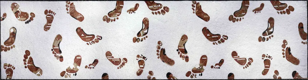 Introducing our stunning Mosaic Flooring - Footprints Carpet, a unique addition to your home that blends art and functionality seamlessly. This exquisite carpet features a captivating mosaic design, adorned with charming bare footprints that create a warm and inviting atmosphere, perfect for entryways and accent walls.Handcrafted with care, each piece of this artwork is made from high-quality marble stones, showcasing the dedication and skill of our artisans. The use of marble not only adds a touch of elegance but also ensures durability, making it an ideal choice for high-traffic areas. The intricate arrangement of each stone highlights the beauty of the mosaic technique, bringing a touch of craftsmanship into your space.The footprints motif symbolizes a welcoming environment, making it perfect for those who want to create a home that feels personal and inviting. Whether you place it in your foyer, hallway, or as a decorative wall piece, the Mosaic Flooring - Footprints Carpet transforms any area into a statement of style and warmth.Upgrade your home decor with this beautiful, handmade mosaic carpet that captures the essence of artistry and function. Ideal for homes, offices, or any venue aiming to create a unique ambience, this carpet is more than just a flooring option; it’s a piece of art that tells a story. Embrace the beauty of handmade craftsmanship and let your floors speak volumes about your taste and style. Make every step a statement with the Mosaic Flooring - Footprints Carpet.