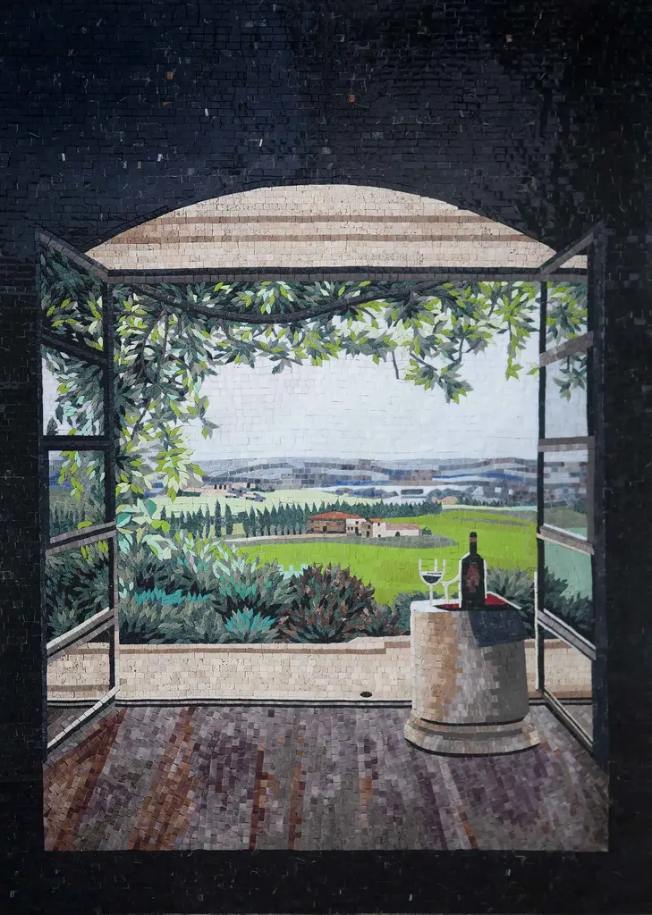 Transform your kitchen into a picturesque Italian escape with our stunning Mosaic Kitchen Backsplash featuring the enchanting "Italian Village" design. This delightful piece captures the essence of rustic charm, showcasing a scene where a couple savors a meal al fresco, framed by the quaint architecture of a traditional Italian village. It’s not just a backsplash; it’s a window into a serene world that adds sophistication and warmth to your cooking space.Crafted with meticulous attention to detail, this mosaic backsplash is as lovely as a painting or postcard, offering a vibrant touch that complements both modern and classic kitchen designs. The colors are carefully chosen to evoke the beauty of the Mediterranean, making your kitchen feel inviting and cozy. Whether you’re looking to enhance your kitchen’s aesthetic or seeking a unique piece of wall art, this mosaic is a versatile choice. Use it to transform your backsplash into a stunning focal point or display it as a striking art piece in your home. With its durable materials and easy application, you can enjoy the beauty of this artwork for years to come.Elevate your home’s style and create a delightful atmosphere with our Mosaic Kitchen Backsplash - Italian Village. Perfect for culinary enthusiasts and art lovers alike, this enchanting backsplash will inspire memorable moments around the dining table while bringing a slice of Italy into your everyday life.