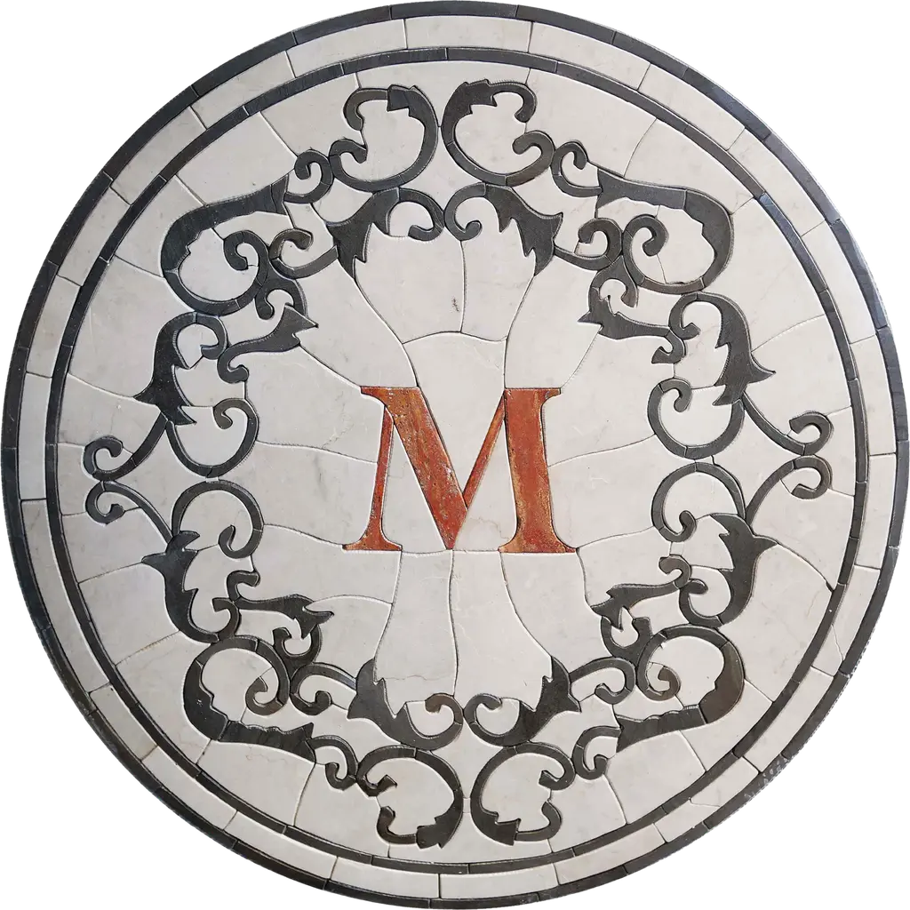 Elevate your living space with our exquisite Mosaic Monogram - Mosaic Artwork, a stunning piece that combines artistry and personalization. This handcrafted mosaic features a bold "M" at its heart, set against a vibrant backdrop of bright orange hues. Fashioned from high-quality petal stone, each piece is meticulously crafted by skilled artisans, ensuring that no two mosaics are exactly alike.The Mosaic Monogram - Mosaic Artwork is not just a decorative item; it is a statement piece that embodies modern design principles while bringing a touch of warmth to any room. Whether displayed on your walls or integrated into your flooring, this artwork takes center stage, capturing attention and admiration from every angle.Transform your home with this unique mosaic that seamlessly blends artistic expression and personal flair. Perfect for entryways, living rooms, or even as a focal point in a hallway, the Mosaic Monogram adds character and sophistication to your decor. Embrace the beauty of handcrafted artistry and make your space truly yours with the stunning Mosaic Monogram - Mosaic Artwork. Let this lively medallion inspire conversations and enhance your home's aesthetic with its vibrant colors and intricate design.
