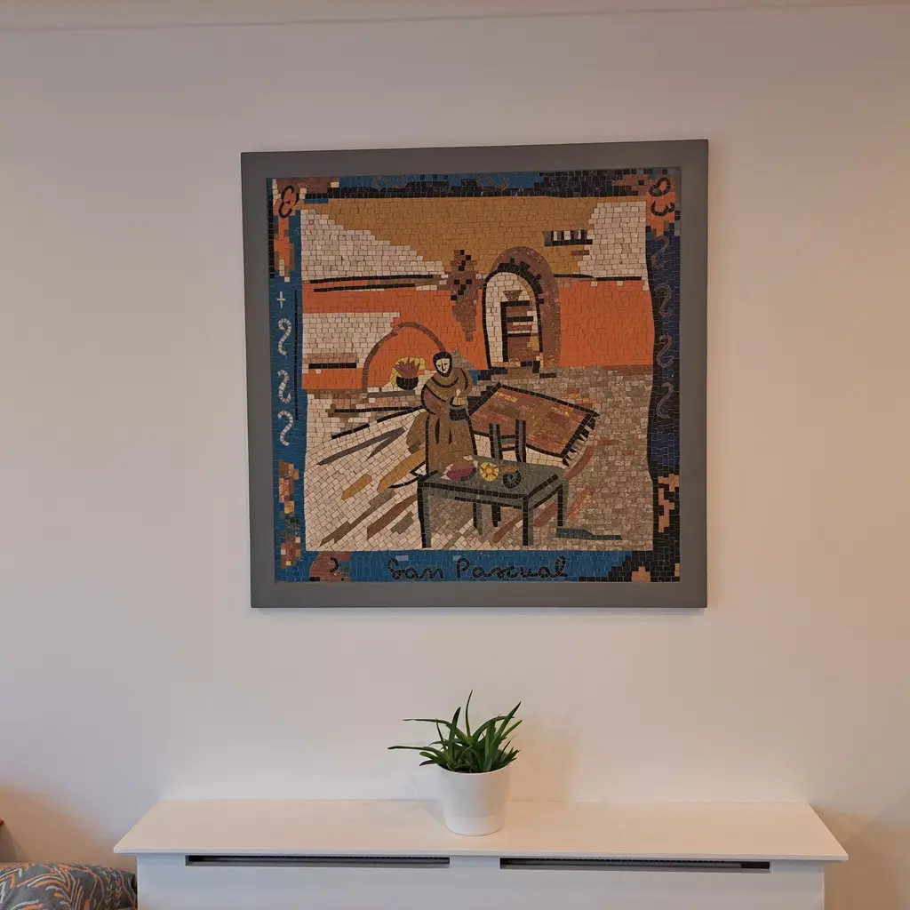 Discover the captivating beauty of artistry with our stunning Mosaic Painting - Sam Pascual, a vibrant and colorful depiction of a man in the kitchen, meticulously handcrafted to infuse warmth and life into your space. This exquisite mosaic is expertly crafted from premium quality natural marble stones, showcasing the skill and dedication involved in transforming exotic materials into a radiant visual masterpiece. Designed to enhance both indoor and outdoor areas, this luxury stone artwork adds an elegant touch to kitchens, dining rooms, or patios. Its intricate details and rich colors capture the essence of everyday life, making it an ideal centerpiece for discerning art enthusiasts or a unique, high-end gift. The mosaic features luminous quartz hues including Prisma Yellow Quartz and Orange Quartz, which shimmer with crystalline, jewel-like brilliance, adding a radiant warmth to the composition. Deep, scintillating shades of Dark Blue Quartz and Prisma Blue Quartz introduce a prismatic, translucent brilliance reminiscent of exotic oceanic tones, while Dark Purple Quartz enriches the palette with its regal, sapphire-like depth and electric radiance. This dazzling combination of premium quartz colors elevates the mosaic's sensory appeal, inviting viewers to experience its silky, cool-to-the-touch surfaces. Invest in a piece that not only elevates your surroundings but also tells a story of quality craftsmanship and artistic expression. The durable marble materials ensure that this stunning work of art will stand the test of time while maintaining its vibrant colors and captivating charm. Embrace the artistry of Mosaic Painting - Sam Pascual and let its luxurious beauty transform your living space.