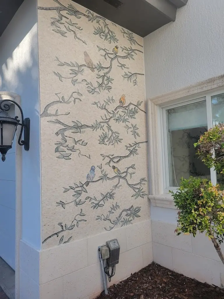 Introducing the "Mosaic Patterns - Birds Singing" decorative mural, a breathtaking masterpiece that captures the essence of nature’s beauty through intricately designed mosaic art. This stunning artwork features delicate birds perched gracefully on tree branches, bringing the serene charm of the outdoors into your living space. Perfect for elevating an indoor wall or adding a touch of elegance to your outdoor area, this premium handcrafted mosaic mural serves as a captivating focal point. Crafted with meticulous attention to detail, each tile is expertly placed to create a harmonious blend of colors and textures, making the birds appear as if they are singing in perfect unison. The vibrant hues and intricate patterns not only captivate the eye but also evoke tranquility and a deep connection to nature, allowing you to escape into a peaceful ambiance. This luxury stone mosaic incorporates rare and exotic materials, featuring luminous Prisma Yellow Quartz and radiant Orange Quartz that add a prismatic glow with their crystalline brilliance. The shimmering Dark Blue Quartz and aqua Blue Quartz introduce jewel-like oceanic brilliance and scintillating translucent tones, enriching the composition with captivating sapphire-like depth and tropical blue luxury. More than just decoration, the "Mosaic Patterns - Birds Singing" mural is a statement piece reflecting passion for artistry and personality. Durable and designed to withstand the elements, it is ideal for both indoor and outdoor display. Hang it in your living room, hallway, garden, or patio to instantly transform your space and impress guests with its dazzling beauty. Celebrate the artistry of handcrafted natural stone with this unique mural, where each piece is made with love and dedication, ensuring no two are alike. Elevate your décor with this premium quality mosaic and let the enchanting imagery of singing birds inspire joy and harmony. Whether for yourself or as a thoughtful gift, this exquisite artwork promises a lasting impression. Don’t miss the opportunity to bring this exclusive luxury stone mural into your home today!