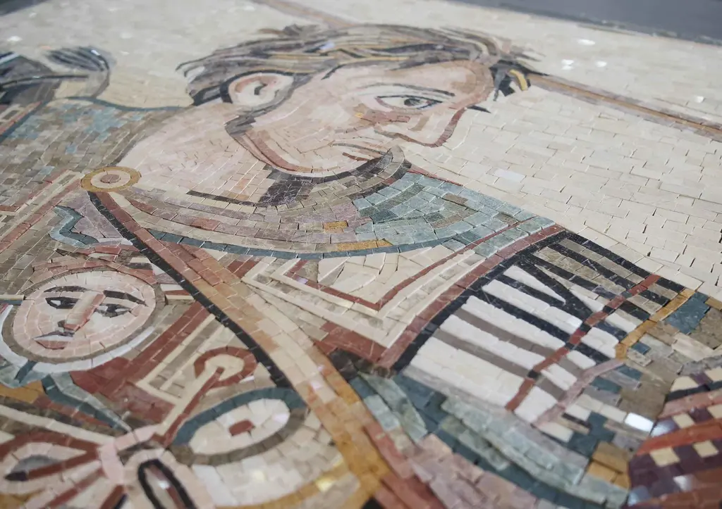 Discover the stunning "Mosaic Reproduction - Alexander The Great," a remarkable artistic piece that brings history to life through intricate craftsmanship. This exquisite mosaic captures the iconic figure of Alexander the Great, depicted majestically on horseback. The choice of neutral colors enhances the timeless elegance of the artwork, making it a versatile addition to any interior decor.Alexander the Great was not just a king of the ancient Greek kingdom of Macedon; he was a visionary leader whose conquests shaped the ancient world. As one of history's most revered figures, this mosaic serves as a tribute to his legacy. Handcrafted with meticulous attention to detail, this fully handmade mosaic utilizes authentic marble stones, ensuring a unique and high-quality finish that stands out in any setting.Perfect for those who appreciate art and history, this piece can be beautifully integrated into various design styles, from classic to contemporary. Whether displayed in a living room, study, or gallery wall, the "Mosaic Reproduction - Alexander The Great" is sure to be a conversation starter and a focal point of admiration.Hang it on your wall and let the spirit of Alexander inspire you and your guests. Each mosaic is designed with durability in mind, promising longevity and a lasting impression. Embrace the beauty of ancient artistry in your home with this stunning mosaic reproduction, a perfect blend of history, art, and craftsmanship that speaks volumes of your taste and appreciation for the finer things in life.