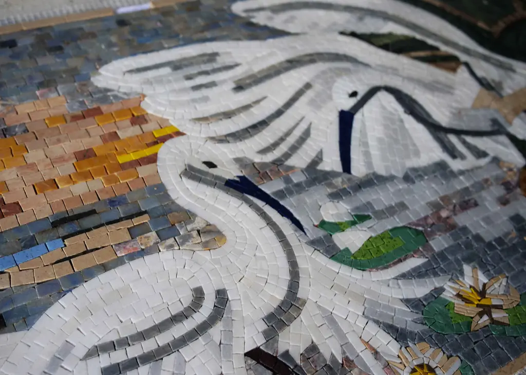 Introducing our Mosaic Sunset Art, a breathtaking piece that transports you into a world of tranquility and beauty. Imagine yourself enveloped in the soothing hues of a magnificent sunset, where the warm golden oranges and fiery reds harmoniously blend, creating a serene atmosphere that calms the spirit. This captivating artwork captures the essence of twilight, inviting you to experience the delicate transition between day and night.At the heart of the design, two graceful swans elegantly nestle in the corner, symbolizing love and serenity. Their gentle presence adds a touch of timeless romance to the scene, making this piece not just art, but a narrative of peace and togetherness. The meticulous mosaic design creates a stunning texture that brings the artwork to life, allowing each color to shine and reflect light in a captivating way.Our Mosaic Sunset Art is more than just a decoration; it's an invitation to escape into a world of beauty and calm every time you glance at it. Perfect for living rooms, bedrooms, or any space that could use a touch of warmth, this artwork serves as a constant reminder of the breathtaking moments that nature offers. Crafted with high-quality materials, our Mosaic Sunset Art is designed to last, ensuring that the beauty of your sunset is preserved for years to come. Bring this enchanting piece into your home and let it remind you of the magic of nature and the solace it can provide. Elevate your decor with our Mosaic Sunset Art and experience the joy of a sunset, right in your own space.