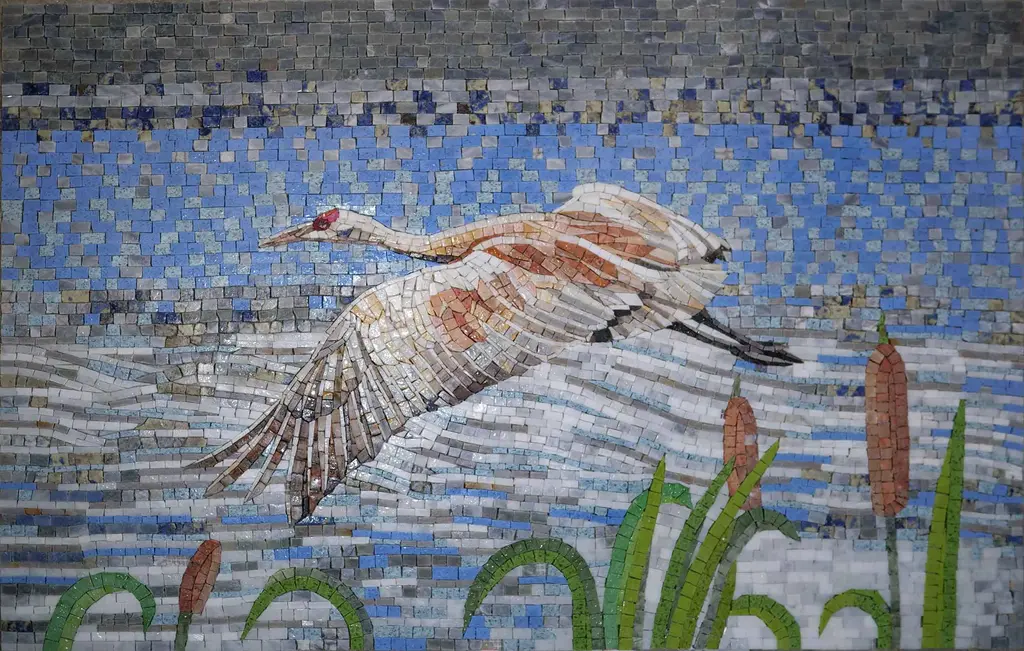 Introducing our exquisite Mosaic Tile Art - Blue Birds, a stunning centerpiece that will elevate the aesthetic of any space in your home or garden. This exceptional artwork features a captivating depiction of two birds gracefully perched by the water, bringing a sense of tranquility and nature's beauty right into your living area.Meticulously crafted with hand-cut mosaics, this mural showcases a harmonious blend of dominant brown and blue hues, creating a striking contrast that captures the eye. Each tile is carefully selected and placed to form a cohesive design, ensuring that every detail of the artwork stands out and resonates with elegance.Whether you're looking to enhance your indoor decor or add a touch of charm to your outdoor space, our Mosaic Tile Art can be customized to fit your size requirements perfectly. This flexibility ensures that you can find the ideal dimensions to suit your environment, making it a versatile choice for any setting.The intricate craftsmanship and thoughtful design of this piece make it a conversation starter, offering a visual escape into a serene landscape where nature flourishes. Display it in your living room, garden, or patio to create an ambiance of peace and beauty. Its timeless appeal allows it to seamlessly integrate with any decor style, from modern to traditional.Experience the artistry and elegance of our Mosaic Tile Art - Blue Birds and let it bring a splash of color and a story of nature into your home. Add this unique mosaic to your collection today and transform your space into a picturesque retreat that will leave an everlasting impression on all who encounter it.