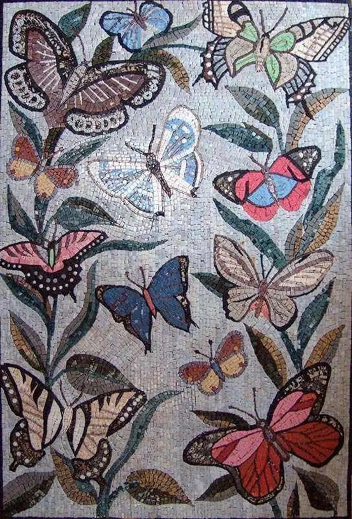 Introducing our exquisite Mosaic Tile Art - Butterfly Charms, a stunning addition to any space that celebrates the beauty of nature and artistry. This intricate mosaic features vibrant and colorful butterfly designs that are skillfully crafted to create a striking piece of art. Each butterfly charm is meticulously arranged to form a breathtaking visual display, capturing the essence of these delicate creatures in a way that adds depth and richness to your decor. Transform your walls or floor with this captivating mosaic art piece, perfect for enhancing the aesthetics of your living room, entryway, or any area where you wish to make a statement. Whether you choose to display it as a focal point or incorporate it into a larger design, the Butterfly Charms mosaic can elevate your home decor with its enchanting imagery.We understand that every home is unique, which is why we offer customization options to suit your specific needs. You can choose from a variety of sizes and border styles, ensuring that your mosaic tile art fits perfectly within your space and complements your existing decor. With limitless options available, you can create a personalized masterpiece that reflects your individual taste and style.Bring the beauty of nature indoors and make a vibrant addition to your home with our Mosaic Tile Art - Butterfly Charms. It's not just a decorative piece; it's a celebration of art and nature that will inspire joy and admiration in everyone who sees it. Order yours today and let the charm of butterflies add a splash of color and elegance to your surroundings.