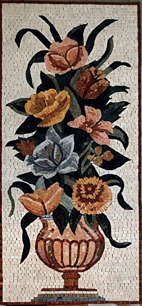 Mosaic Tile Art - Roman Blooms - 90cm X 150cm (35" X 59") / Without Frame