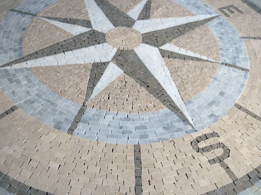 Mosaic Tile Art - The Compass | Luxury Handcrafted Stone Art - 60cm X 60cm (24" X 24")