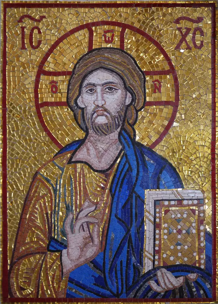 Introducing our stunning Mosaic Wall Art - Jesus Christ Mural, a breathtaking piece that brings a touch of spirituality and elegance to any space. This captivating mural features a beautifully crafted mosaic depiction of Jesus Christ, gracefully set against a shimmering golden glass background that radiates warmth and tranquility. The intricate detailing showcases Jesus holding a Bible, symbolizing faith, love, and guidance.Whether it's placed indoors in your living room, study, or prayer area, or displayed outdoors on your patio or garden wall, this Mosaic Wall Art - Jesus Christ Mural serves as a powerful statement piece that inspires reflection and reverence. Its vibrant colors and meticulous craftsmanship create a mesmerizing visual that draws the eye and invites contemplation.Designed for durability and longevity, this mural is suitable for various settings, ensuring it remains a cherished centerpiece for years to come. Made with high-quality materials, it is both weather-resistant and easy to maintain, making it perfect for enhancing any environment with its spiritual essence.Transform your home or garden into a sanctuary of peace and inspiration with our Mosaic Wall Art - Jesus Christ Mural. Ideal for personal use or as a meaningful gift for loved ones, this piece is a wonderful way to celebrate and share your faith. Let the beauty of this mosaic wall art elevate your space and remind you of the divine presence in your life. Embrace the opportunity to reflect on your spirituality with this exquisite mural, where artistry meets devotion.
