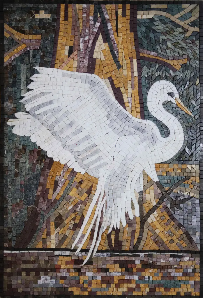 Elevate your home decor with our stunning Mosaic Wall Art featuring the graceful Majestic Heron. This intricately handcrafted piece showcases a heron standing serenely by the banks of a tranquil river, perfectly capturing the essence of nature's beauty. Meticulously crafted from premium quality natural marble stones, each mosaic tile is placed with precision to create a harmonious blend of neutral tones that add sophistication and timeless elegance to any space. The inclusion of luminous Light Red Quartz infuses the artwork with radiant, crystalline hues that shimmer like jewel-like flames, lending a scintillating prismatic brilliance to the overall composition. This rare and exotic material enhances the mosaic’s depth and visual allure, making it a true luxury stone creation. Each piece of art is fully handmade, ensuring a unique and one-of-a-kind decoration that stands out in your home. The soft, silky hues of the mosaic not only complement a variety of interior styles but also bring a calming presence to your living space, evoking the peacefulness of a natural setting. Ideal for both walls and floors, this versatile piece can be displayed in your living room, hallway, or as a captivating focal point in your garden area. The Majestic Heron mosaic wall art is not just a decoration; it is a statement piece that draws the eye and inspires conversation. Whether you are an art enthusiast or simply seeking a distinctive way to enhance your decor, this magnificent mosaic combines craftsmanship and artistry to transform your environment into a sanctuary of style and serenity. Embrace the elegance of the Majestic Heron and let it become a cherished part of your home.
