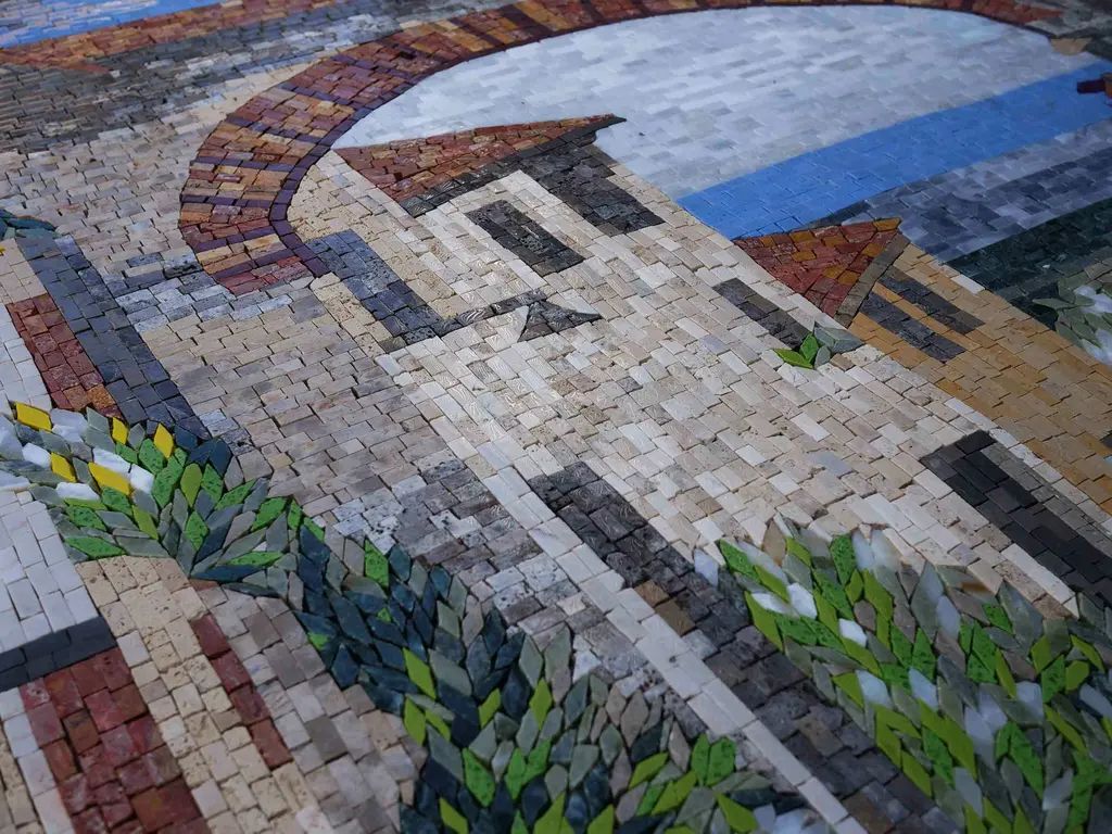 Discover the enchantment of our Mosaic Wall Art - Old Town, a stunning luxury stone piece designed to elevate the aesthetic of any home or office space. This exquisite handcrafted mosaic showcases a charming scene of old town houses set against a textured stone road, beautifully rendered in a palette of neutral colors that evoke tranquility and nostalgia. Imagine walking through a cobblestone street, where historic architecture whispers tales of the past. This mosaic captures that timeless essence, transforming any wall into a captivating focal point. The intricate design and meticulous craftsmanship invite viewers to explore the nuances of each carefully placed tile, radiating premium quality and artistry. Crafted from exotic natural stone materials, this wall art is not just a decorative item but a true work of art that breathes life and character into your space. Its neutral tones offer a subtle yet striking contrast against any backdrop, making it incredibly versatile for various interior styles. The mosaic is further enriched with rare and dazzling stone colors: the exotic Brazilian blue of Blue Bahia imbues the piece with oceanic brilliance and deep cerulean luxury, while Blue Macaubas quartzite adds stunning cerulean veining and electric blue radiance reminiscent of sapphire-like depths. Complementing these, the luminous and prismatic hues of Prisma Yellow Quartz, Aqua Blue Quartz, and Purple Quartz contribute shimmering, jewel-like translucence and crystalline brilliance that captivate the eye. Whether adorning your living room, creating a serene atmosphere in your office, or enhancing your bedroom with calm sophistication, this mosaic promises to inspire and captivate. Elevate your décor with this piece that perfectly balances artistry and elegance, becoming a conversation starter that draws admiration from all who see it. Bring the beauty of the old town into your modern life with the Mosaic Wall Art - Old Town. More than decoration, it’s an invitation to pause, reflect, and appreciate the artistry of everyday life. Enhance your space with sophistication and charm; invest in this stunning mosaic masterpiece today and experience the transformative power of handcrafted natural stone art.