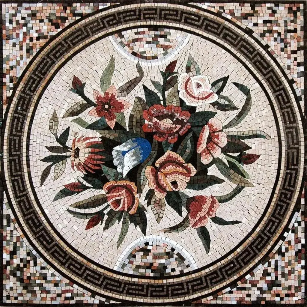 Discover the exquisite beauty of our Mosaic Wall Art - Roman Assortment, a stunning piece that brings the charm of classic Roman artistry into your home. Each artwork is meticulously handcrafted from natural stones and hand-cut tiles, ensuring that no two pieces are exactly alike. This unique work of art features intricate floral arrangements that add a touch of elegance and sophistication to any space.The Mosaic Wall Art - Roman Assortment is not just visually captivating; it is also versatile. Whether you want to adorn your living room, dining area, or any wall in your home, these mosaics make a perfect statement piece that captures the attention of guests and sparks conversation. Its durable design means it's suitable for a variety of applications, including floor inlays, wall accents, and even table tops.Embrace the tradition of ancient artistry with a modern twist by decorating your space with our Mosaic Wall Art - Roman Assortment. Ideal for those who appreciate craftsmanship and natural materials, this masterpiece encapsulates the elegance of Roman art while providing the durability required for everyday living. Enhance your decor and let your walls tell a story of beauty and culture with this remarkable mosaic today.