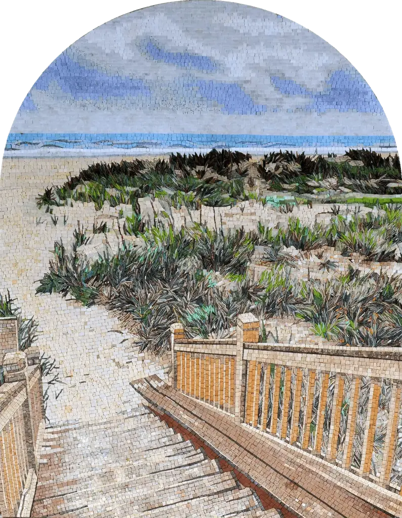 Introducing our stunning Mosaic Wall Art - The Seaside View, an exquisite piece that transports you to a serene coastal paradise with every glance. This captivating artwork captures the enchanting essence of a seaside escape, inviting you to imagine strolling down the steps to the tranquil shore. Handmade with care using beautiful marble stones, each piece is meticulously crafted to ensure a unique and vibrant representation of seaside tranquility.Perfect for enhancing both indoor and outdoor spaces, the Mosaic Wall Art - The Seaside View adds a touch of elegance and relaxation to your home or garden. Whether you're decorating a living room, patio, or entryway, this art piece serves as a stunning focal point and conversation starter. The intricate details and rich colors of the mosaic work together to create a visual masterpiece that echoes the picturesque beauty of nature.Treat yourself or surprise a loved one with a gift that embodies relaxation and charm. The Mosaic Wall Art - The Seaside View not only elevates your decor but also brings a sense of peace and harmony to your surroundings, making it ideal for meditation spaces or serene retreats. Adorn your walls with this exquisite art and let it inspire calmness and tranquility in your life.Experience the beauty of the seaside every day with our Mosaic Wall Art - The Seaside View. Bring the magic of the ocean into your space and create an ambiance that soothes the soul. Shop now and transform your environment with this unique, handcrafted mosaic art piece that celebrates nature's beauty in a truly artistic way.