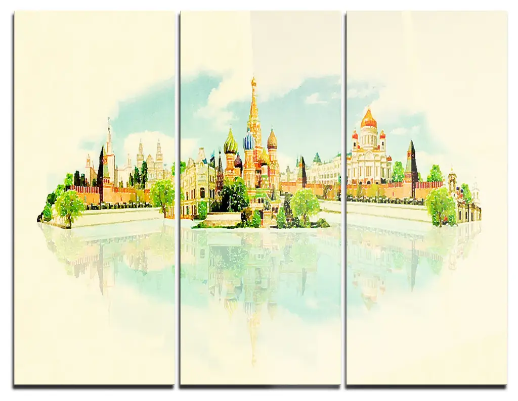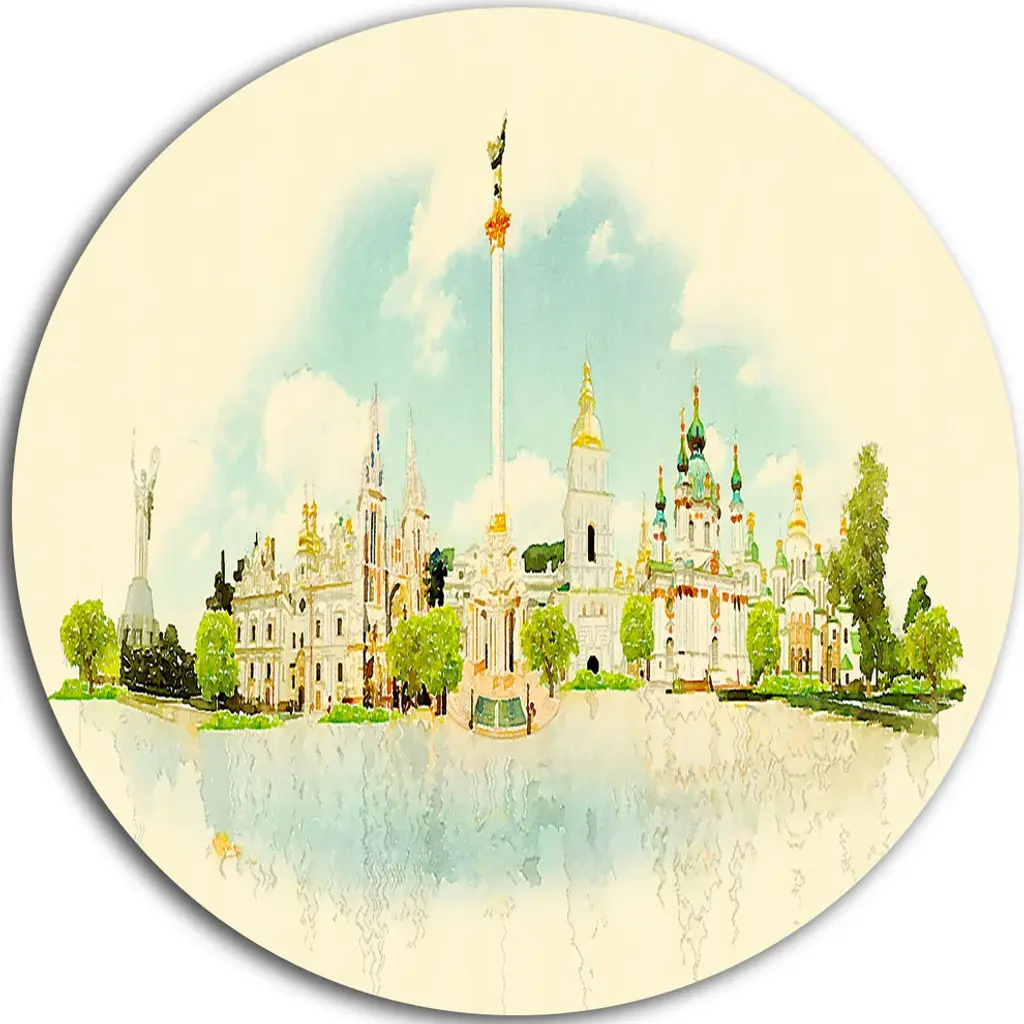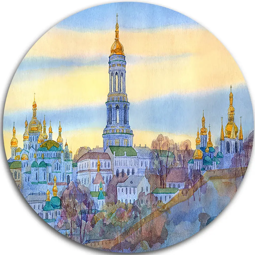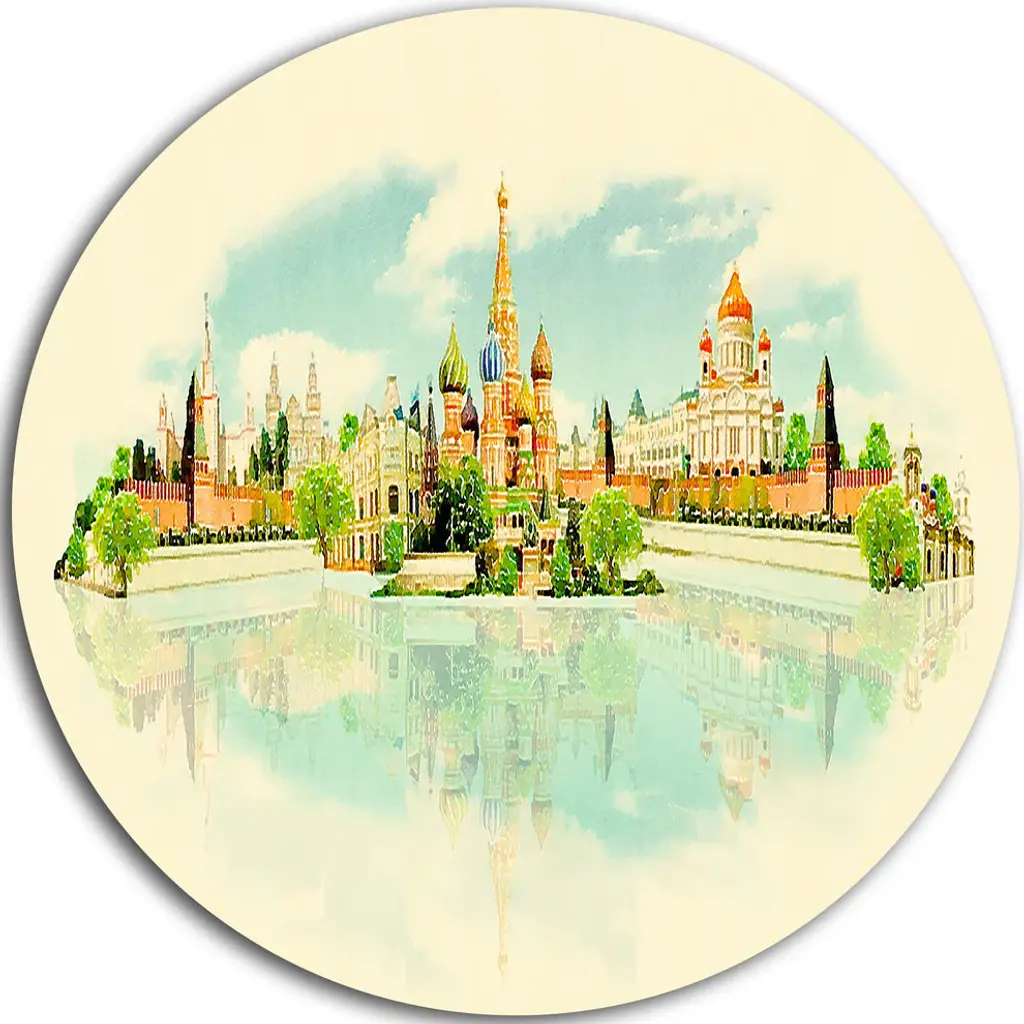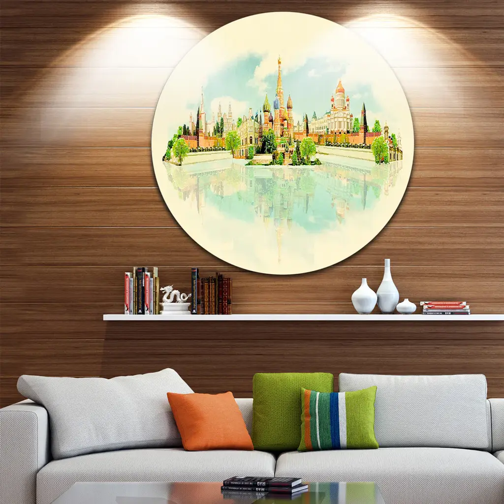 Moscow Panoramic View, Cityscape Watercolor Round Wall Art, 11"