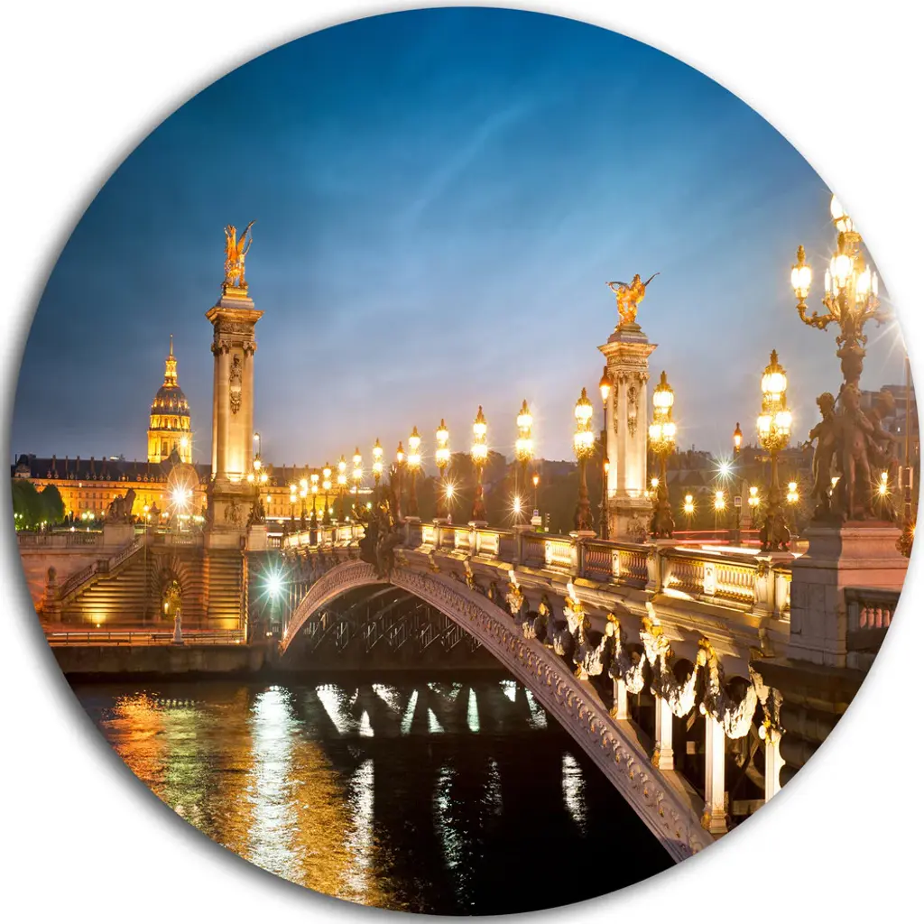Bring Contemporary Abstraction to your home with this large Circle Metal wall art. This Moscow Panoramic View Metal Artwork makes it the focal point of any room or office. - White Gloss Coating ensures colors are extra vibrant with light reflection.- Aluminum grade Sheet Metal with 1 inch mounting frame on the back giving the illusion that the artwork is floating on the wall..- Mounting Brackets are included along with instructions.- High Quality Digital images are created directly into a glossy aluminum panel producing a stunning and captivating print into the glossy finish of the metal.- Water, Fire and Scratch resistant HD Aluminum panels.- Looks better than any photo paper and guaranteed to last at least 20 years- Easy to clean with a microfiber cloth. Colors are far superior to regular Canvas Art. - Easy to Hang