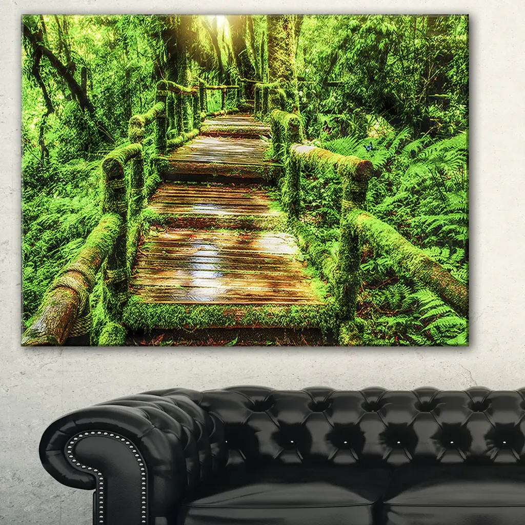 The Moss around Wooden Walkway in Rain canvas art print is sure to make an impression on anyone who sees it. This artwork is gallery wrapped around a 1-inch solid wood frame and arrives carefully packaged and entirely ready to hang on the wall. Design Art only uses the highest resolution and pigments to ensure a crisp colorful print that is never faded or pixelated. This artwork is sure to be a conversation starter in any home or office.