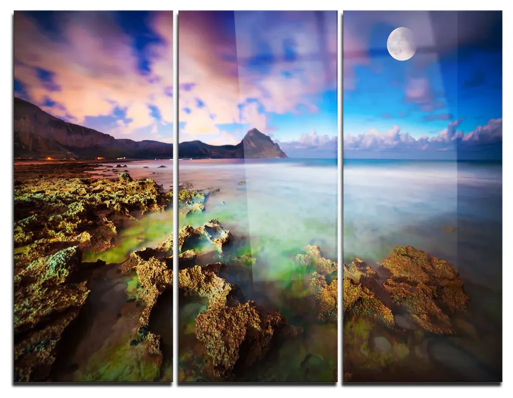 36"œ x 18"œ total size. Ready To Hang! (3 pieces - 12"œ x 18"œ each). 3 Panel Split (Triptych) Metal Print featuring mossy rocks at a beach in Kudat, Sabah, East Malaysia. Modern metal wall art for home or office wall decor & interior design. Printed on Luxurious, HD aluminum glossy metal panels. Multi panel art.. HD aluminum panels. Metal print wall art. Includes Shadow Wall Mount on the back.• Aluminum Metal Wall Art• Made in USA• Ready to hang - No assembly required• Shadow mount hardware on the back• 0.045"œ thick HD Aluminum Panels• Scratch resistant, glossy finish• Superb color clarity, luxurious prints• Epson printing process• For indoor or moisture rich environment use• Easy to clean. Gently wipe with microfiber cloth.