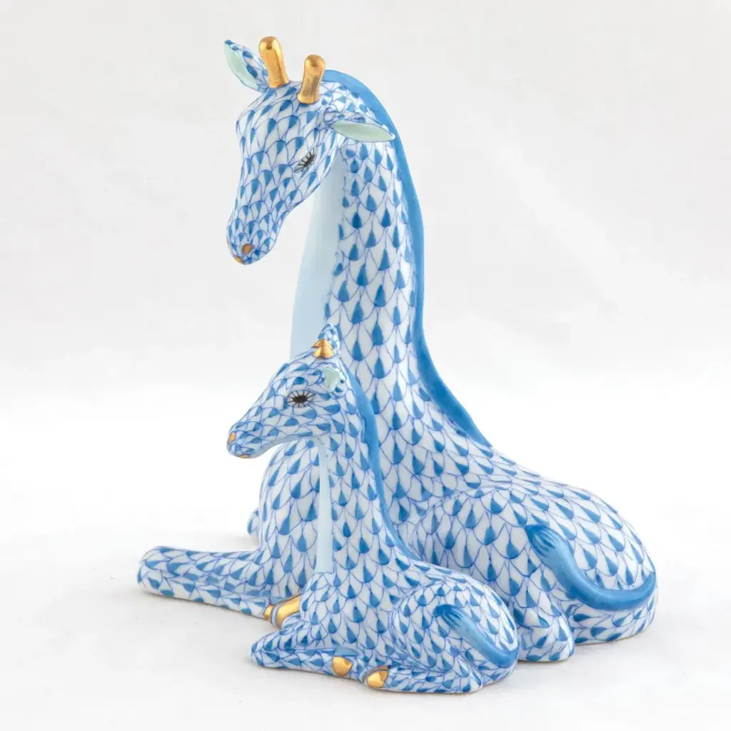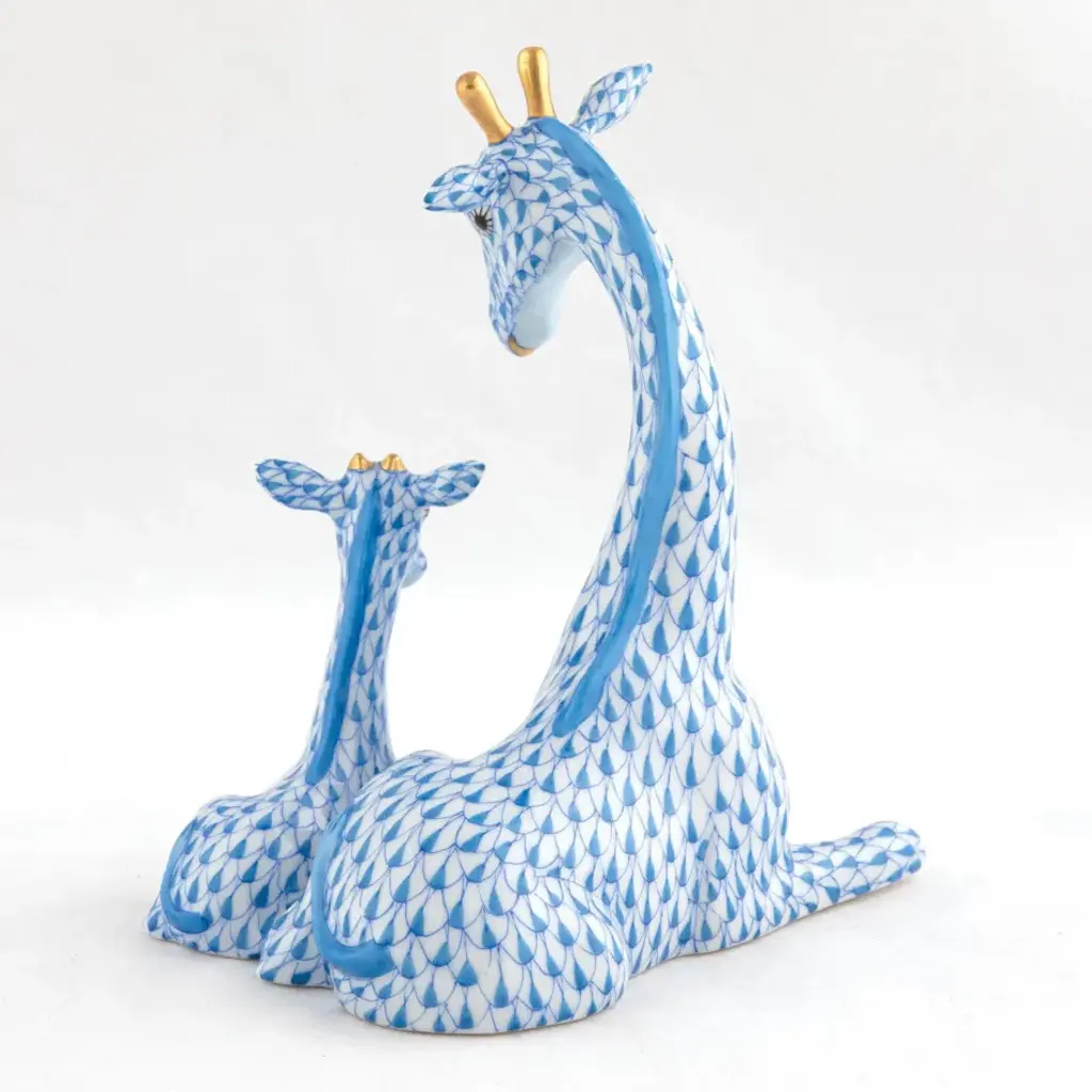 Mother And Baby Giraffe Blue 4.25 In L X 3.2 In W X 5 In H