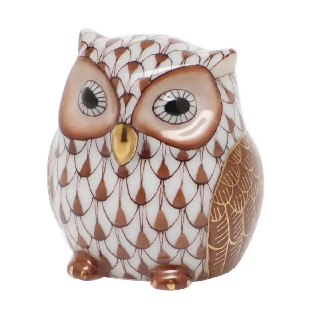 Endearing animals meek and bold, large and small, demure and majestic eagerly await the chance to melt your heart and warm your home. Each is brought to life by the skilled hands of artisans crafting and painting these charming porcelain creatures. The famous fishnet décor adorning many of the animals took form in 1858 when a Herend painter became inspired by a fishscale design he saw on a Chinese porcelain plate and painted a similar pattern onto a rooster figurine to imitate feathers. The rest is history, with the fishnet design now a Herend signature prized worldwide. Now the biggest porcelain manufactory in Europe, Herend was founded in 1826 to produce earthenware in the small Hungarian village for which it was named. At the time, Hungary was flooded with low-cost pottery, but in 1839, Mor Fischer became the Manufactory’s new owner and he decided to focus on producing dinnerware replacement pieces for Europe’s royal families to complement their valuable porcelain patterns from Germany and the Far East. As his client base grew, Fischer commissioned his artists to begin designing dinnerware patterns of their own. Queen Victoria’s 1851 purchase of a large set for Windsor Castle was a milestone, setting the stage for aristocrats throughout Europe to clamor for Herend in their estates. In the 1850s, Herend added meticulously-crafted figurines to its creations. Herend’s trademark fishnet pattern, which is widely recognized and prized as Herend’s signature design, started in 1858 when an artist who was intrigued with a Chinese plate’s fish scale design painted it onto a rooster figurine to imitate feathers.