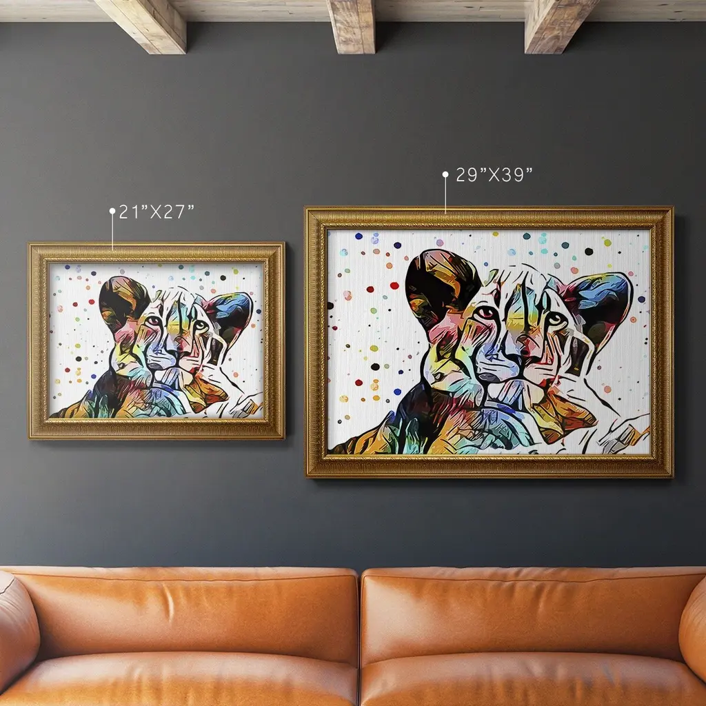 Motley Crew in Color I Premium Framed Canvas- Ready to Hang A Premium Framed Canvas created to last. Framed in distressed wood and available in an array of sizes and colors Featuring a beveled a solid wood stretcher bar, each piece comes ready to hand 3 SIZES AVAILABLE 16''X20'' - Overall Size 18'X27'' - Overall Size 24''x36'' - Overall Size Each piece is made to order. Each piece comes with hanging hardware. Made in the USA Ready to Hang Giclee Paper Print Acrylic Glass Beveled Matt Board